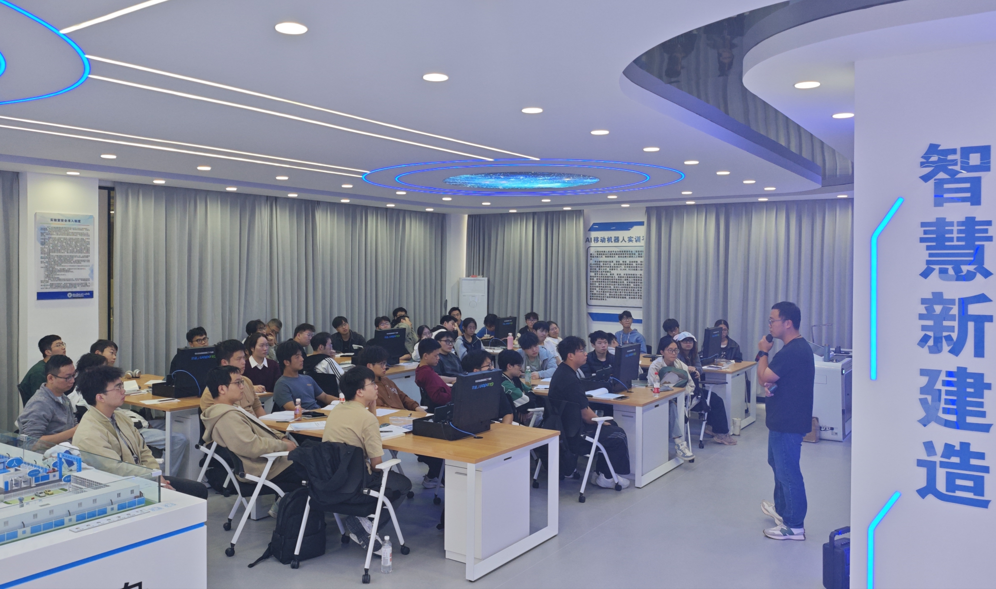 近日,土木建筑工程学院土木工程实验中心新近完成一期建设的数字建造实验室正式投入使用,并迎来了它的“开门第一课”——《传感器与检测监测技术》实验环节《建筑人工智能物联实训台实践》。本次课程特邀行业领军企业广联达科技的资深专家孙瑞志老师授课,标志着学院在智能建造领域的人才培养迈入了产教融合、虚实结合的新阶段。