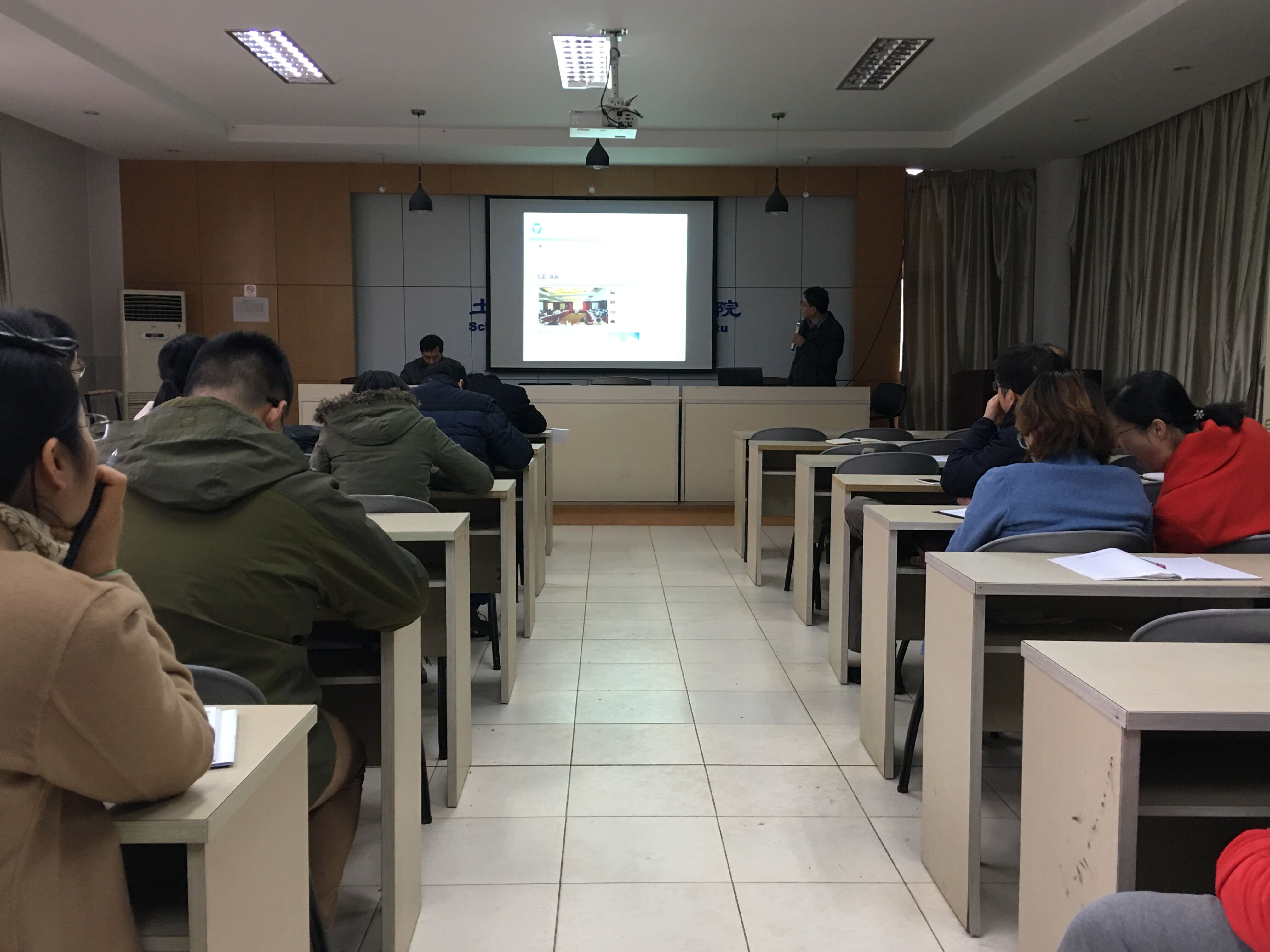 之后,李荟老师和王文军副院长分别介绍了2018届本科毕业设计安排、剖析了我院毕业设计工作中存在问题及应对方案。这是土建学院首次在全院范围内讲解毕业设计相关问题,有利于进一步统一标准、严格要求,也体现了学院对于该项工作的高度重视。