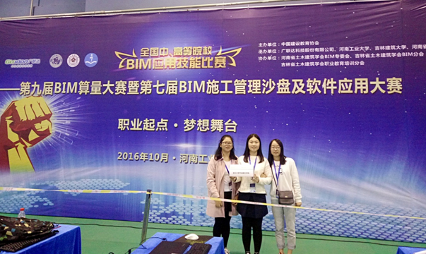 10月21日-23日,在河南工业大学举行的2016年全国中、高等院校BIM应用技术比赛——第九届BIM算量大赛暨第七届BIM施工管理沙盘及软件应用大赛中,土木建筑工程学院工程管理专业三位同学荣获第九届BIM算量大赛本科精英组常规赛三等奖。