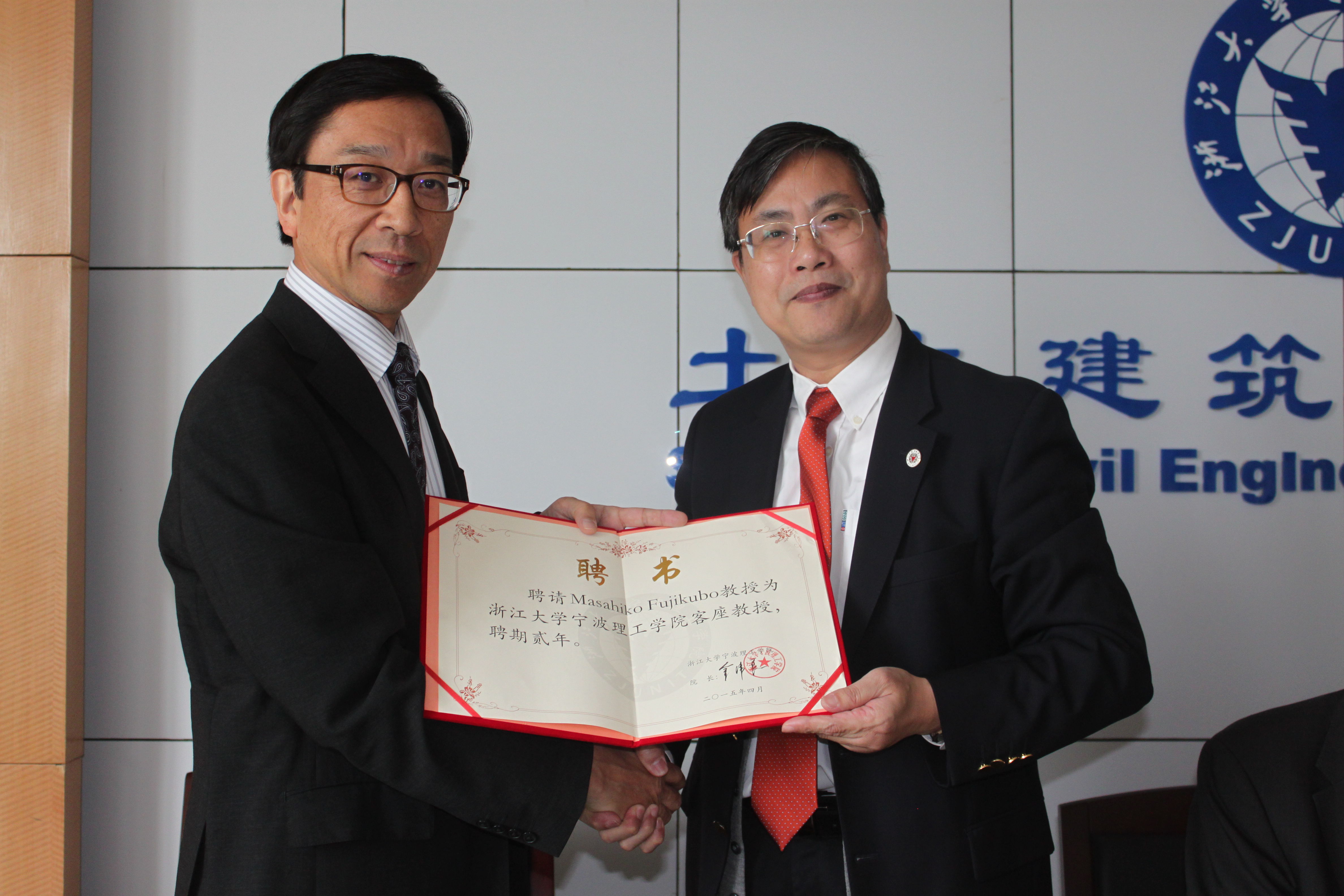 会上,张科锋副院长介绍了Masahiko Fujikubo教授的基本情况,金伟良院长向Masahiko Fujikubo教授颁发了客座教授聘任证书并佩戴了校徽。