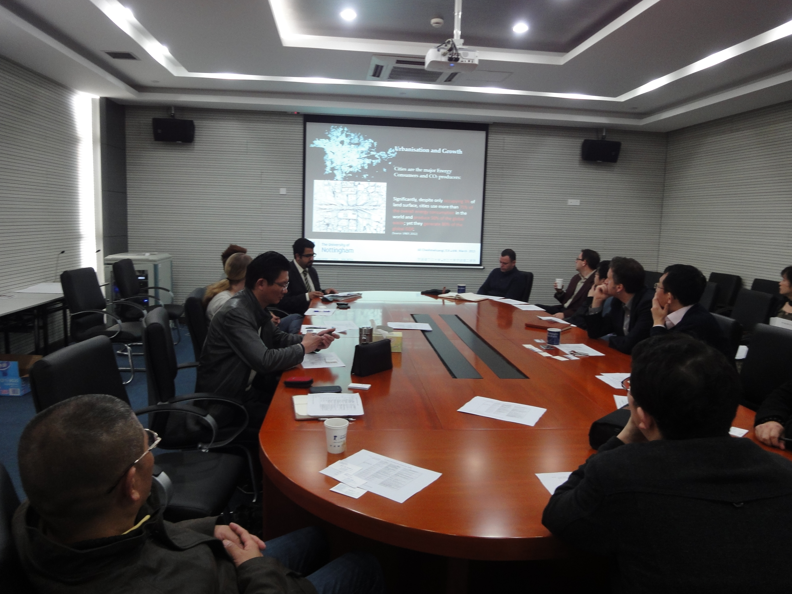 宁波诺丁汉大学理工学院院长格辛·温 ·罗伯茨教授热情接待了谢院长一行,并详细介绍了宁波诺丁汉大学的学科建设、人才培养、科学研究等相关情况,同时结合自己的研究领域进行了专题交流。诺丁汉理工学院邓进明、夏亮、艾历·切希等几位博士做了与建筑环境领域相关的学术报告。
