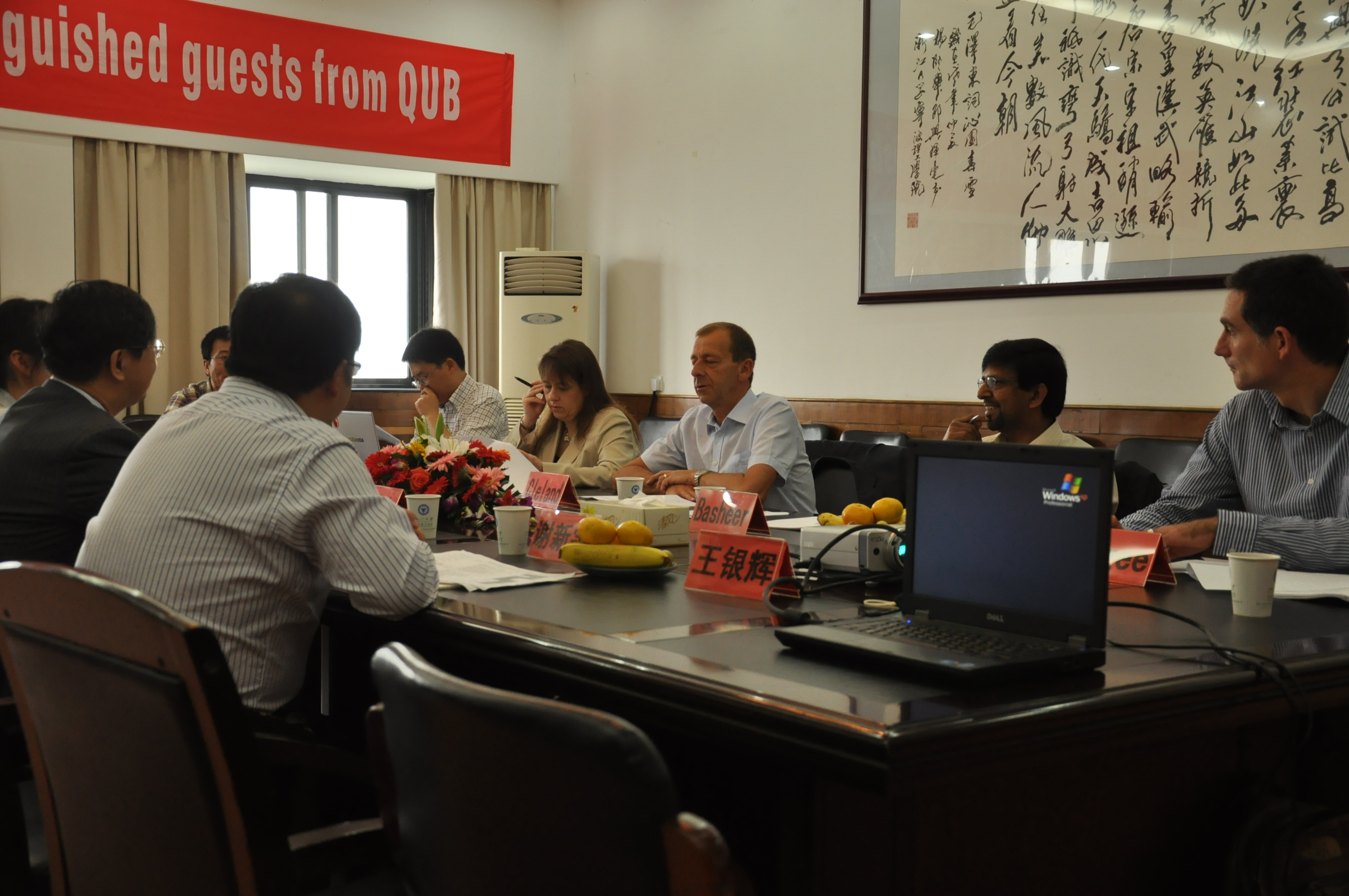 9月25日上午,土建分院在行政楼1103会议室与英国女王大学建筑规划与土木工程学院经理Tara MeCollum教授,院长David Cleland教授,建筑环境研究中心主任P.A.M.Basheer教授,中英科学桥项目团队Bryan Magee博士后及Bai Yun博士一行5人进行对接洽谈。参加洽谈的有学院院长金伟良教授、土建分院院长谢新宇教授、副院长张克明、孙家瑛、王银辉及部分教师代表。