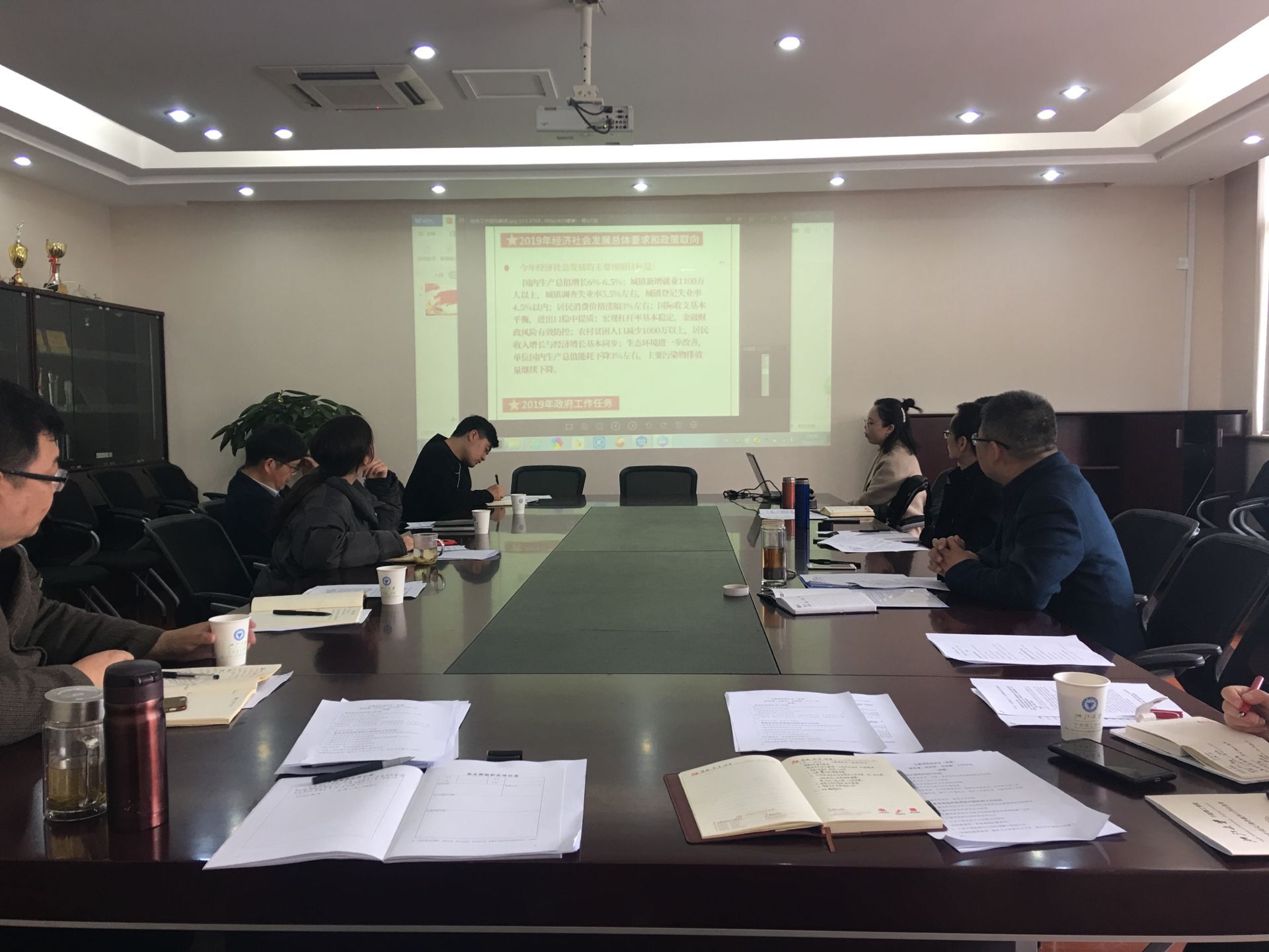 首先,按照学院理论学习中心组2019年学习计划安排,党总支书记王银辉带领全体参会人员认真学习了两会精神,对《2018年政府工作报告》和《2019年政府工作任务》进行了重点研究和解读,促进了大家对新提法、新思想、新政策的了解。