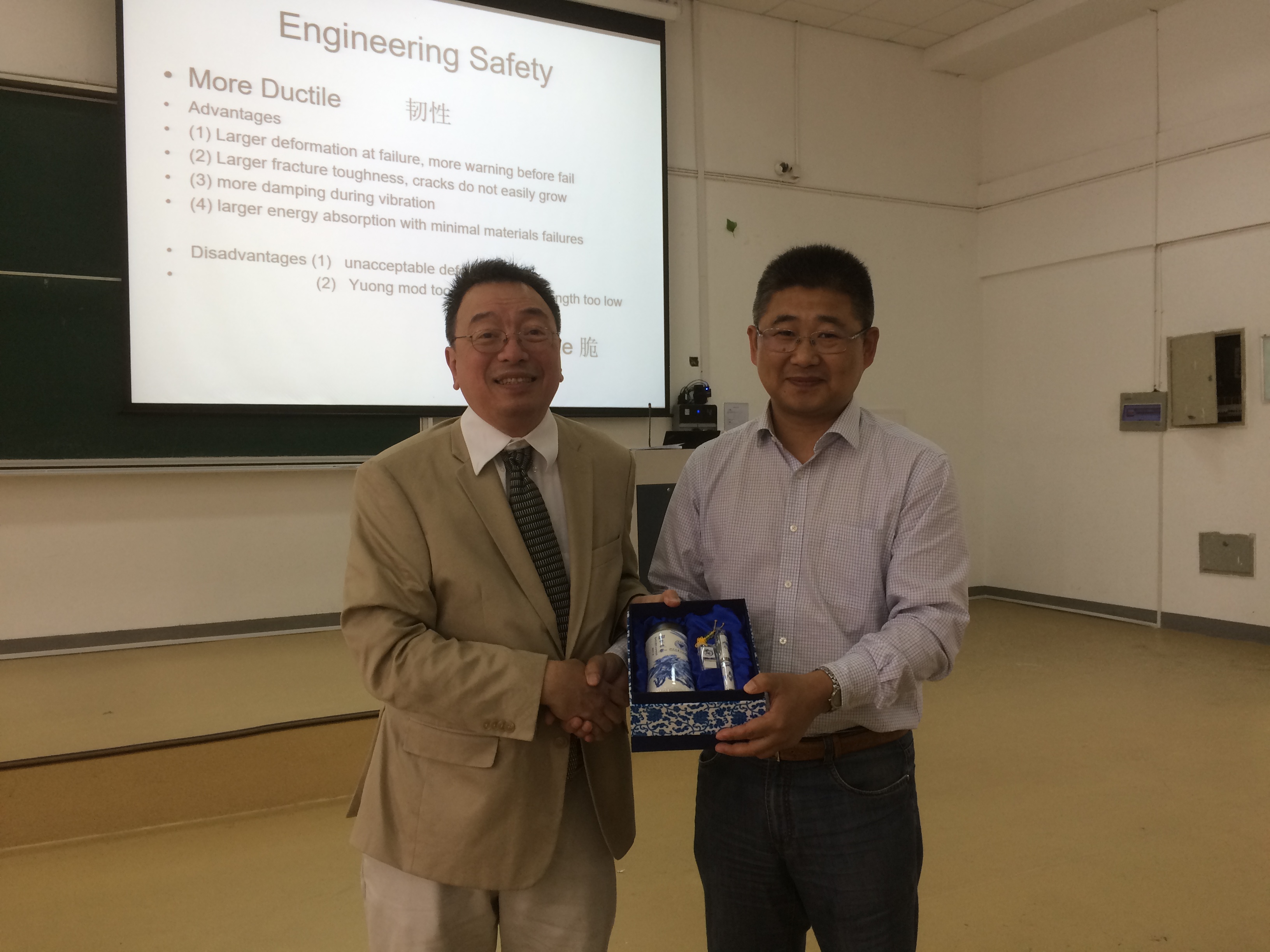 在该报告会上,David教授用生动的PPT介绍、直观的现场实验演示与听众积极互动,从最基本的复合材料机理讲起,结合美国载人飞船失事、泰坦尼克号沉没等耳熟能详的工程实例,深入浅出地阐述了复合材料在不同环境温度中所表现的截然不同的材料属性、复合材料各组分在静力与动力响应中所扮演的截然不同的角色等重要的科学问题。就土木工程而言,则需进行合理设计,充分发挥不同复合材料的优点,取长补短,使结构在静力、动力等不同工况下均做到尽可能的“合理”。David教授在报告中还一再强调事实验证的重要性,主张所有的理论研究,都必须得到事实的验证。