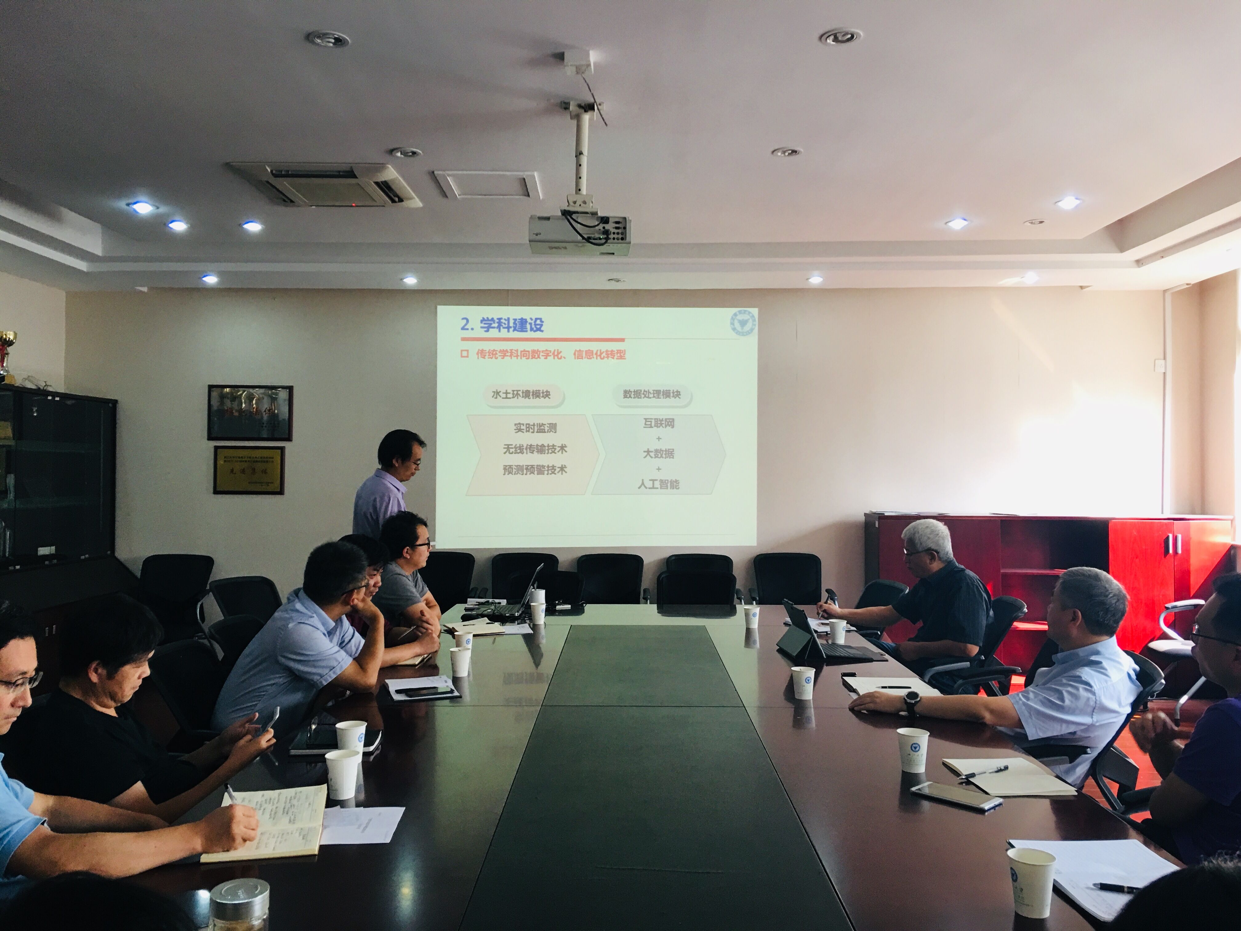 会上,土建学院凌道盛院长就学院学科建设情况作了详细汇报,重点介绍了学院以院士引进和宁波大湾区工程技术研究中心建设为契机,进一步凝练学科特色、推进转型发展、准备学位点申报、引进高层次人才等。同时,也提出了缺乏高层次平台和社会服务资质、学科跨度大,发展不均衡、实验室投入少,先进科研设备不足、管理手段落后等问题,并分别提出了相应的解决思路和建议举措。