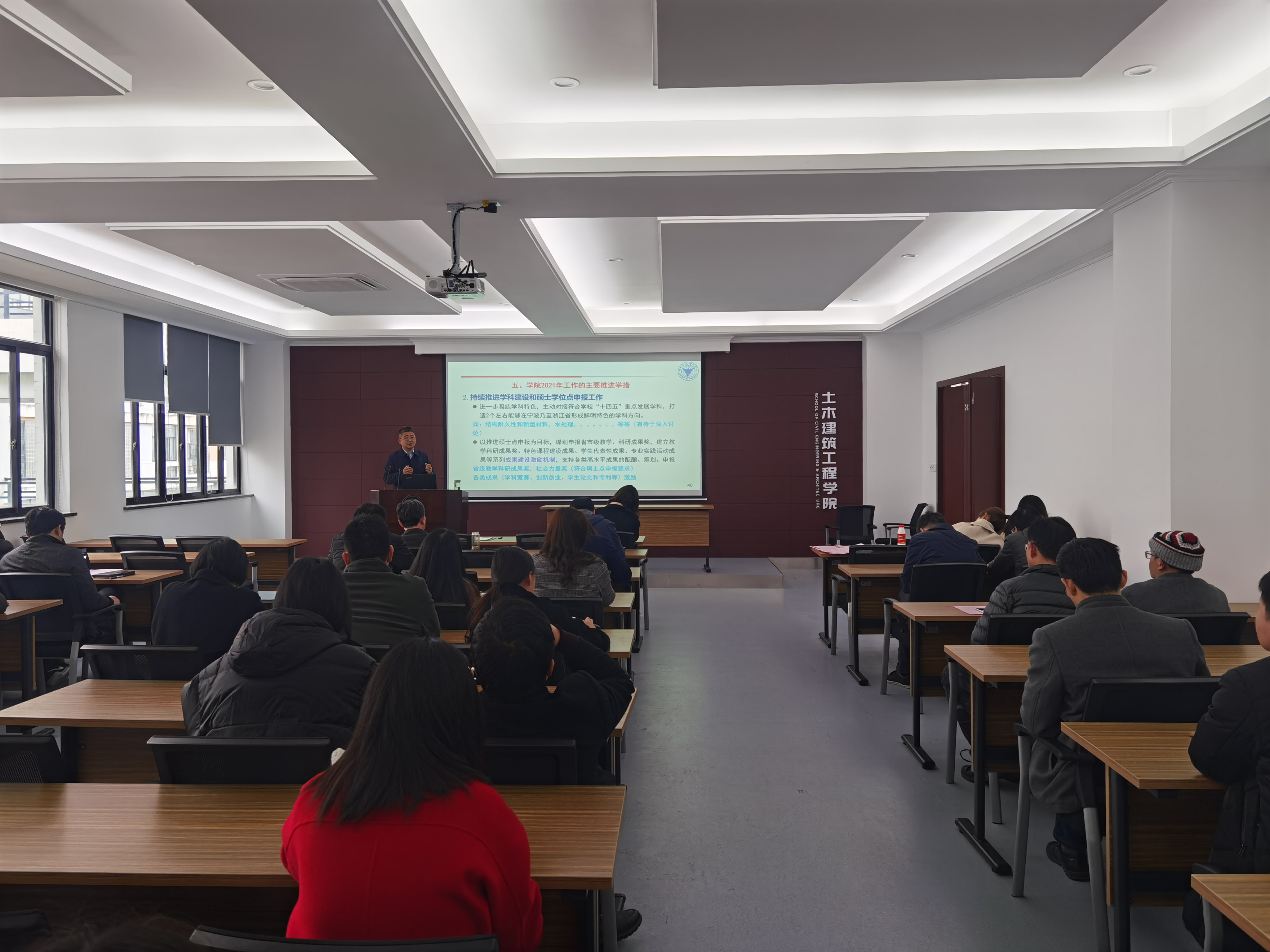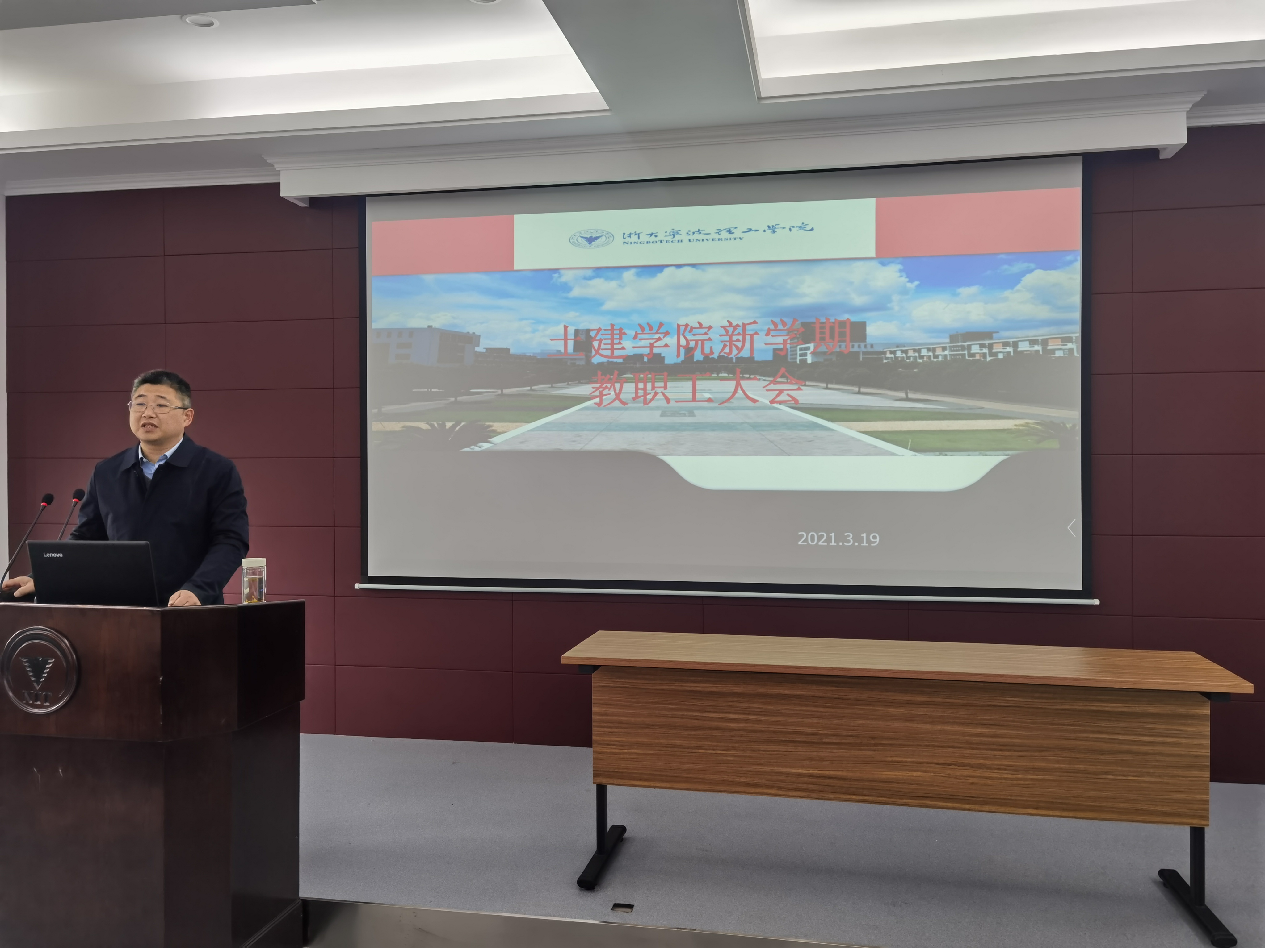 3月19日下午,土建学院在SA305报告厅召开新学期教职工大会,结合学校近期召开的相关会议精神,安排部署本学期的重点工作。会议由学院党委副书记韩晶晶主持,学院党政领导班子及全体教职工参加了会议。