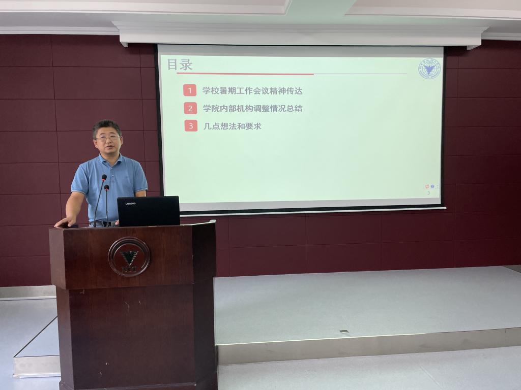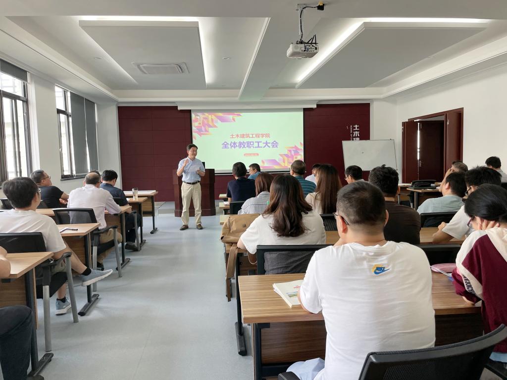 9月16日下午,土建学院在SA305报告厅召开新学期教职工大会,传达学校暑期工作会议精神,动员部署本学期重点工作,学院全体教职工参加会议。会议由学院副院长王文军主持。