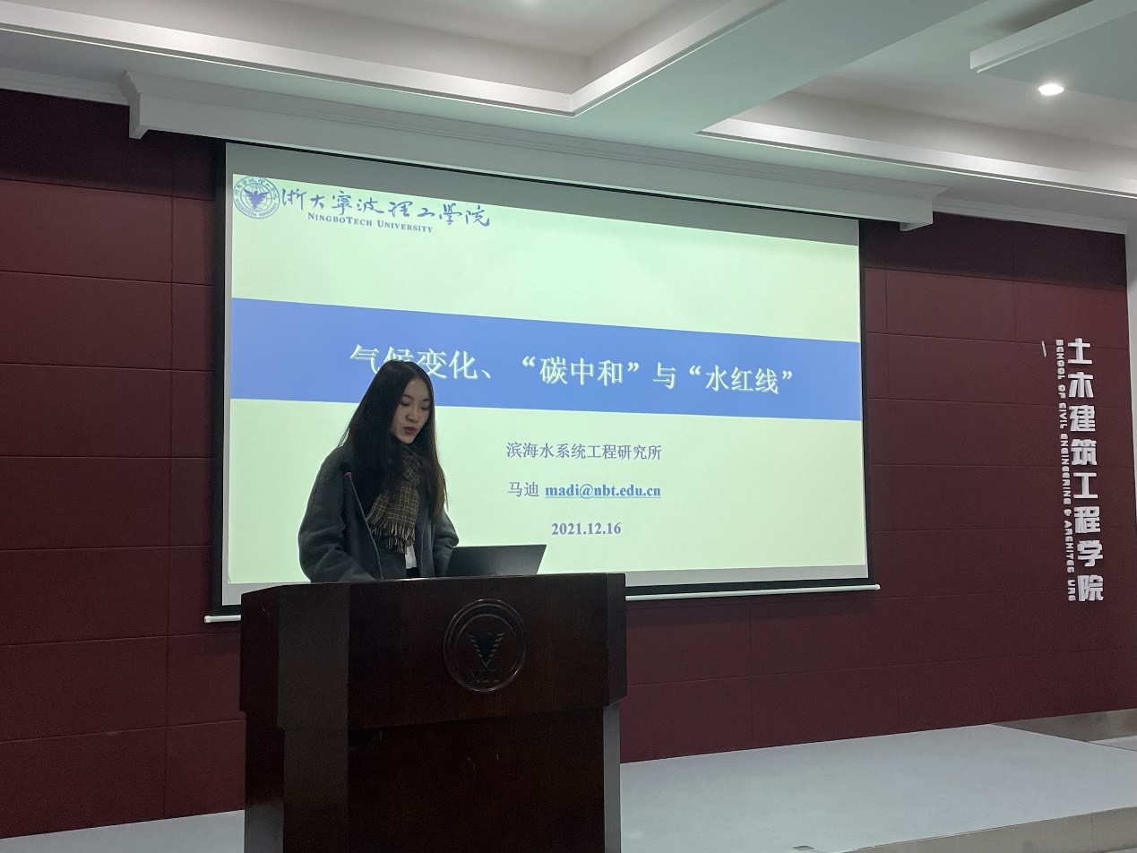 马迪博士作“气候变化、碳中和与水红线”报告。在全球气候变化的背景下,分析了“碳达峰”、“碳中和”的重要性,探讨了“双碳”战略与最严格水资源管理制度“三条红线”间的协同与权衡问题。