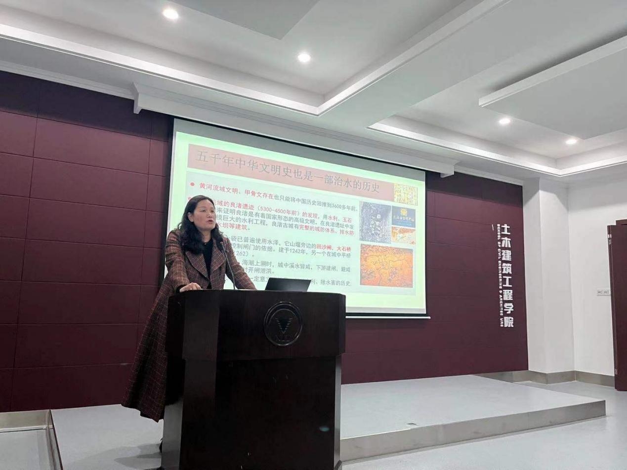 会上,滨海水系统工程研究所所长靳慧霞教授作“立足水生态、做好水文章”报告。靳教授以国家政策导向为背景,论述了水生态的重要性,分享了对水生态的独到见解,最后对团队治水的几个典型案例进行了介绍,阐述了水环境治理工作的广阔前景。