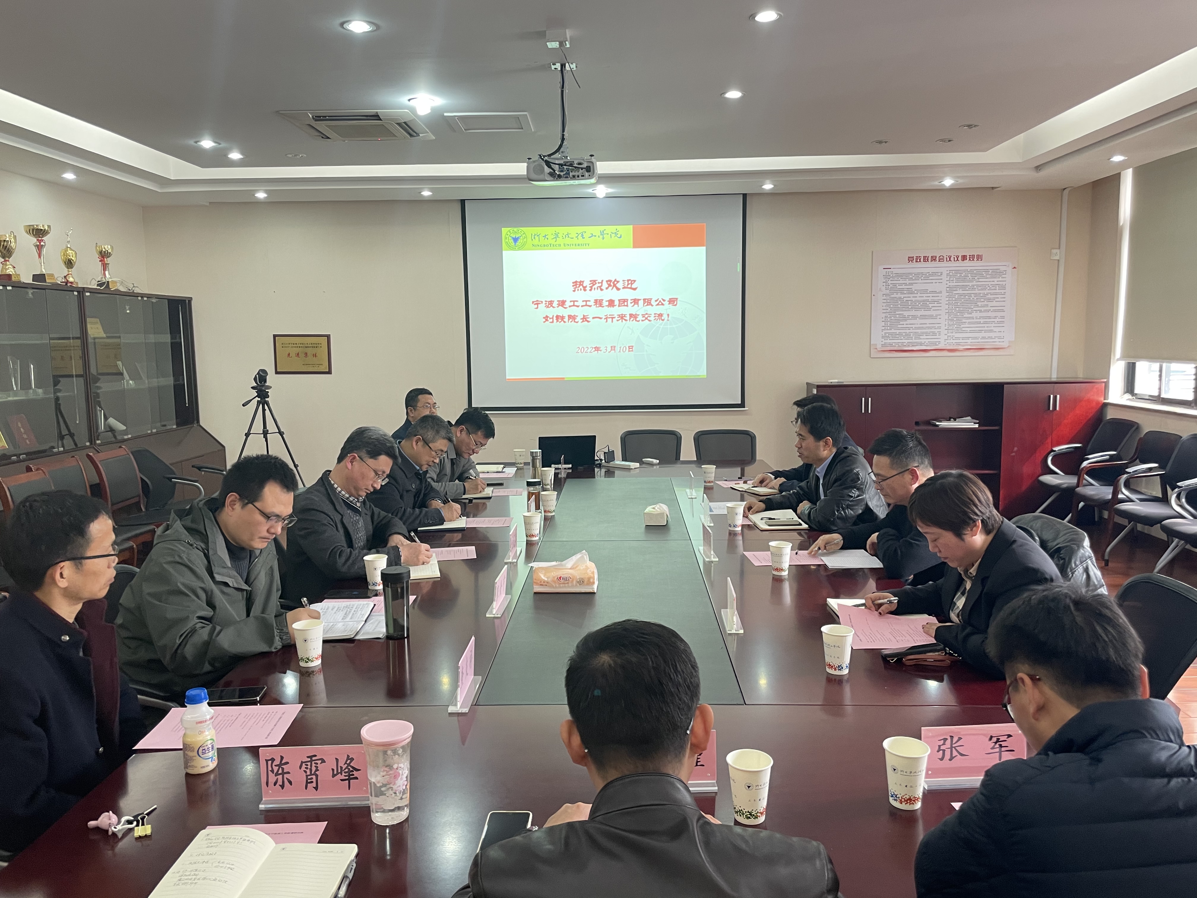 3月11日下午,宁波建工工程集团有限公司技术研究院院长刘铁一行4人来我院交流,学院党委书记王银辉、副院长王文军、耿健以及系所负责人等参加了会议。会议由王文军副院长主持。