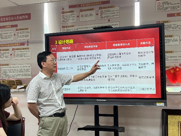 土建学院教师积极响应教育部号召,围绕自己的教学科目开展了各类课程思政教学与教研工作,但仍有部分教师尤其是新进教师对课程思政的认识和理解存在不足,缺乏相关工作经验。为了提高教师普遍课程思政能力,学院教工第二党支部于2022年6月22日在党员之家召开了“课程思政教学与教研经验交流会”。会议由党支部书记方鹏飞教师主持,由马佳星和方鹏飞作为主要汇报人向支部全体党员分享了其课程思政教研项目的申报心得和经验,以及教学过程中如何将思政元素融入课堂,进而达到高质量的教学和育人目标。