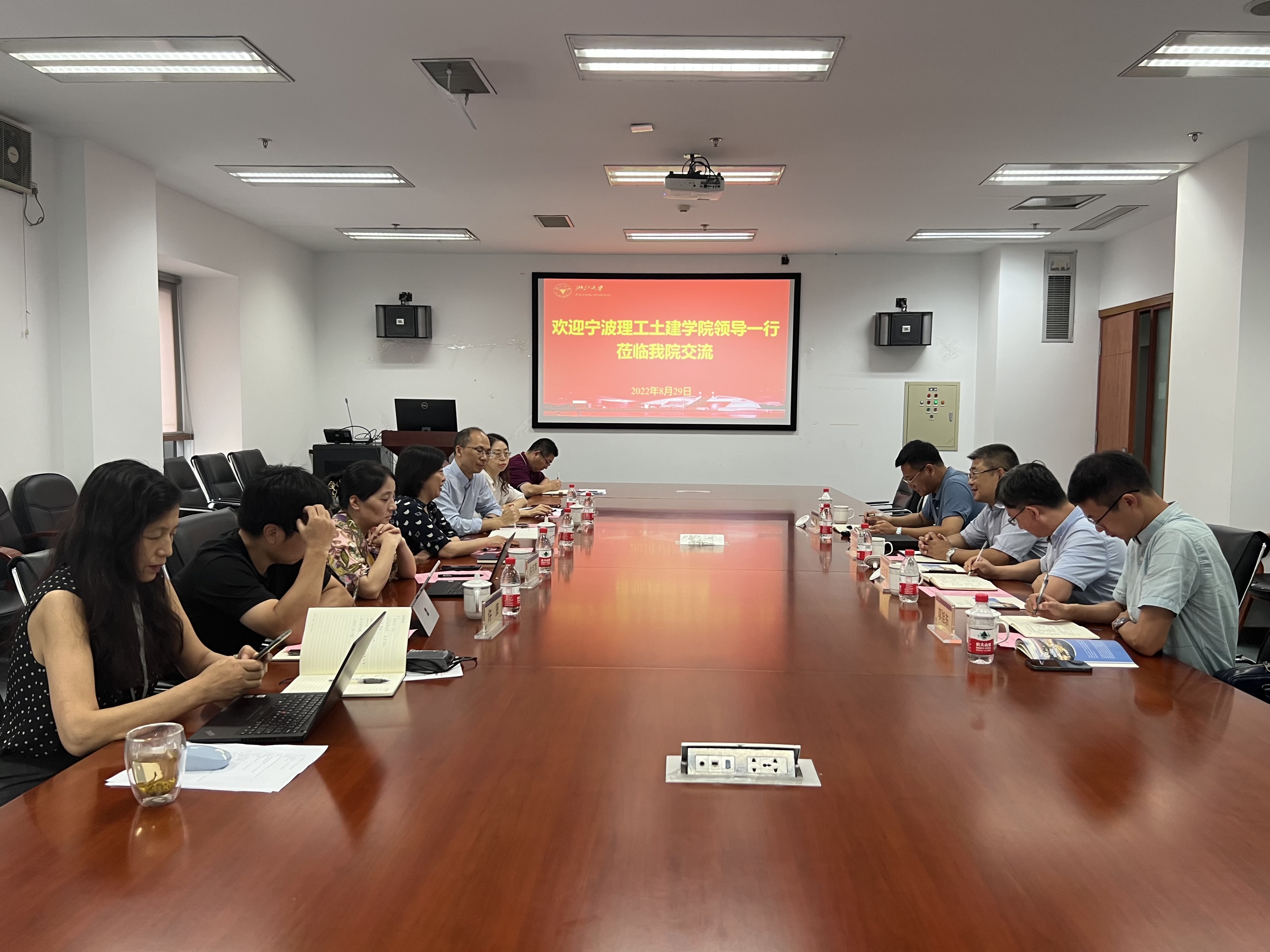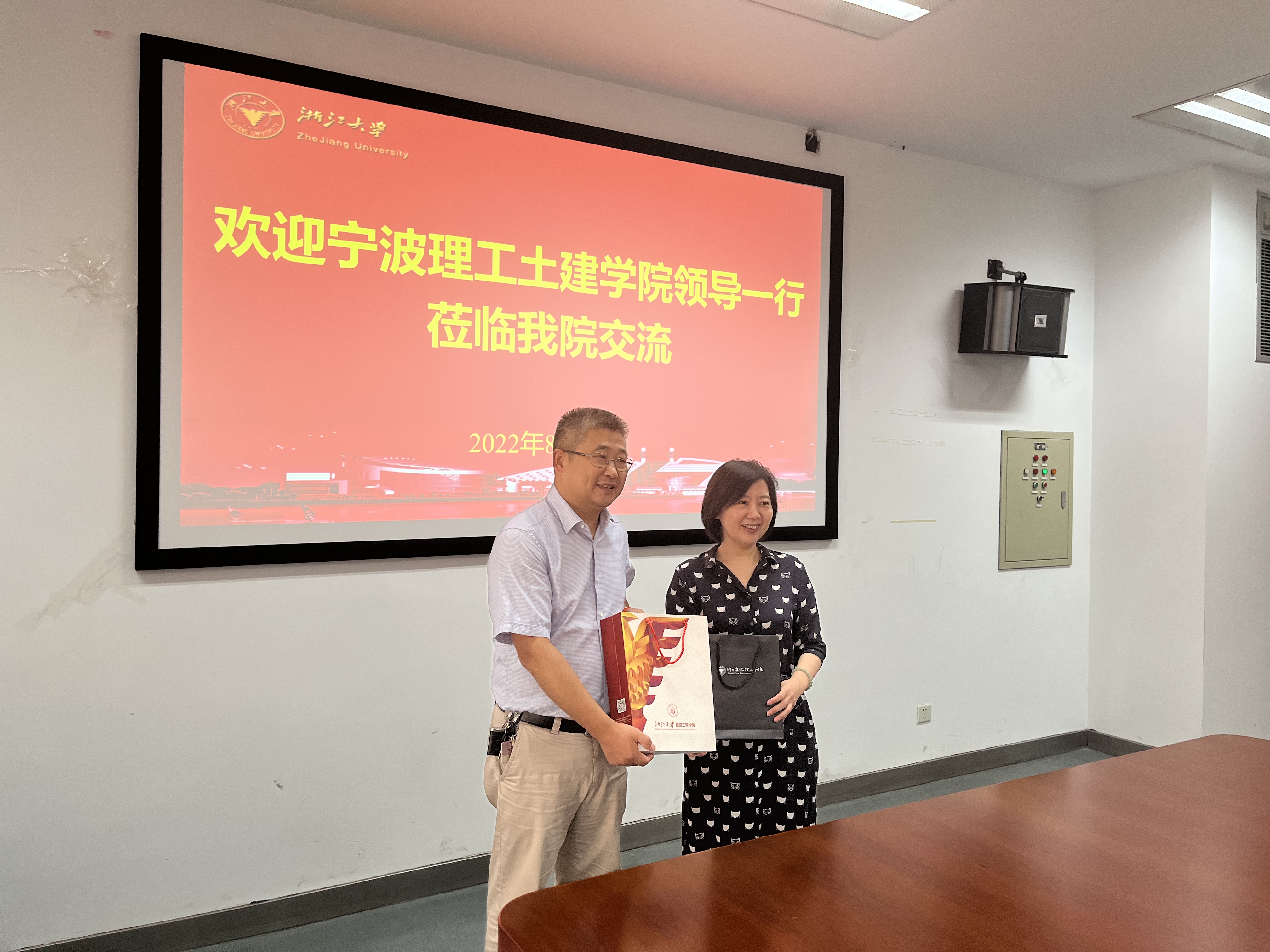 8月29日下午,土建学院党委书记王银辉、副院长王文军和耿健、党委副书记邬旭东等一行赴浙江大学建筑工程学院学习交流。浙江大学建工学院党委书记刘峥嵘,副院长贺勇、许月萍,党委副书记张威,党政办主任姜秀英等出席座谈会。