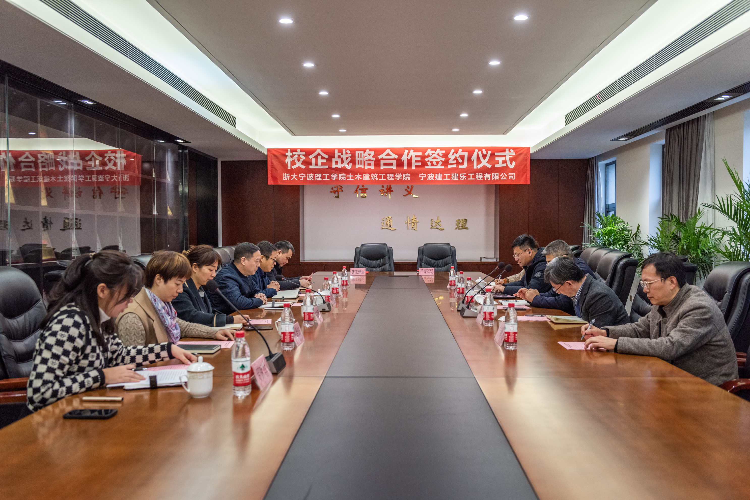 12月7日下午,土建学院党委书记王银辉一行赴宁波市建工建乐工程有限公司开展交流,签约校企战略合作协议、党建“砼盟”共建协议。宁波建乐董事长吴文奎,副总经理余劲草、毛乾雁,党总支副书记许必强,总工程师刘用海,财务总监潘余波、办公室主任助理罗琳群出席签约仪式。