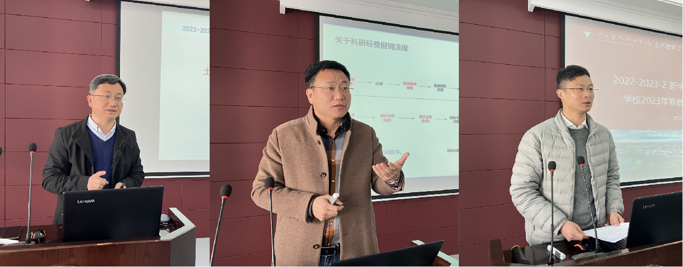 学院副院长王文军、耿健,副书记邬旭东汇报了2022年度教学、科研、学生、工会、纪委等工作完成情况,并布置了2023年相关工作。