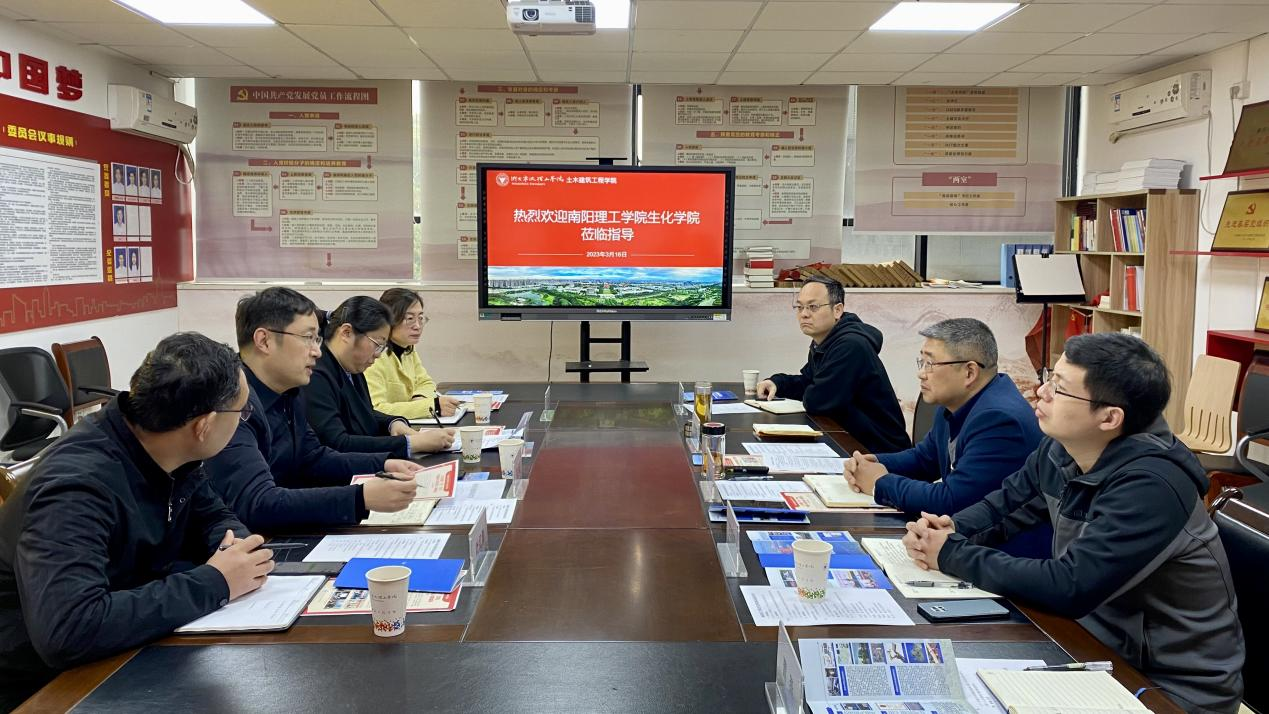 土建学院党委书记王银辉代表学院对南阳理工学院的到来表示热烈欢迎,介绍了学院的基本情况以及“全国党建标杆院系”、“全国党建工作标杆支部”等党建工作特色成效。康磊书记对南阳理工生化学院特色、党建工作开展情况进行了介绍。双方就“一点三圆”党建文化育人共同体、砼文化思政育人格局、样板支部创建工作机制等展开深入交流。