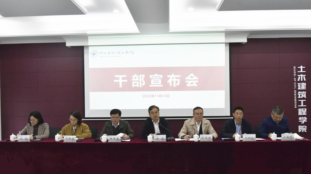11月14日,土建学院在SA305召开干部任职宣布会议。学校党委书记徐方,党委委员、副校长张荣祥,党委副书记杨国富出席会议并讲话。学校党委委员、党委组织部部长周树红主持会议,学院领导班子及全体教职工参加了会议。