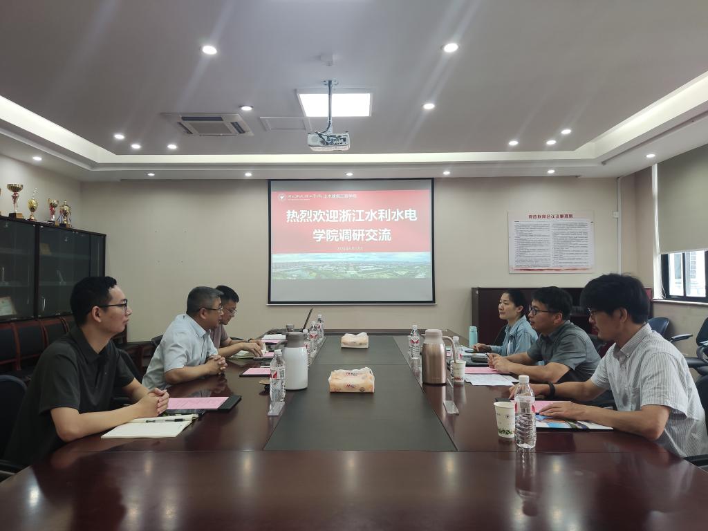 王银辉院长首先对浙江水利水电学院一行人来院考察交流表示欢迎,并就智能建造系的基本情况、智能建造专业的申报经验及人才培养方案等进行了详细介绍。杜文学院长介绍了浙江水利水电学院建筑工程学院的基本情况。会上,双方就机构设置、岗位聘任、绩效考核、队伍建设、教材编写、实验室管理等问题进行了深入全面的交流。