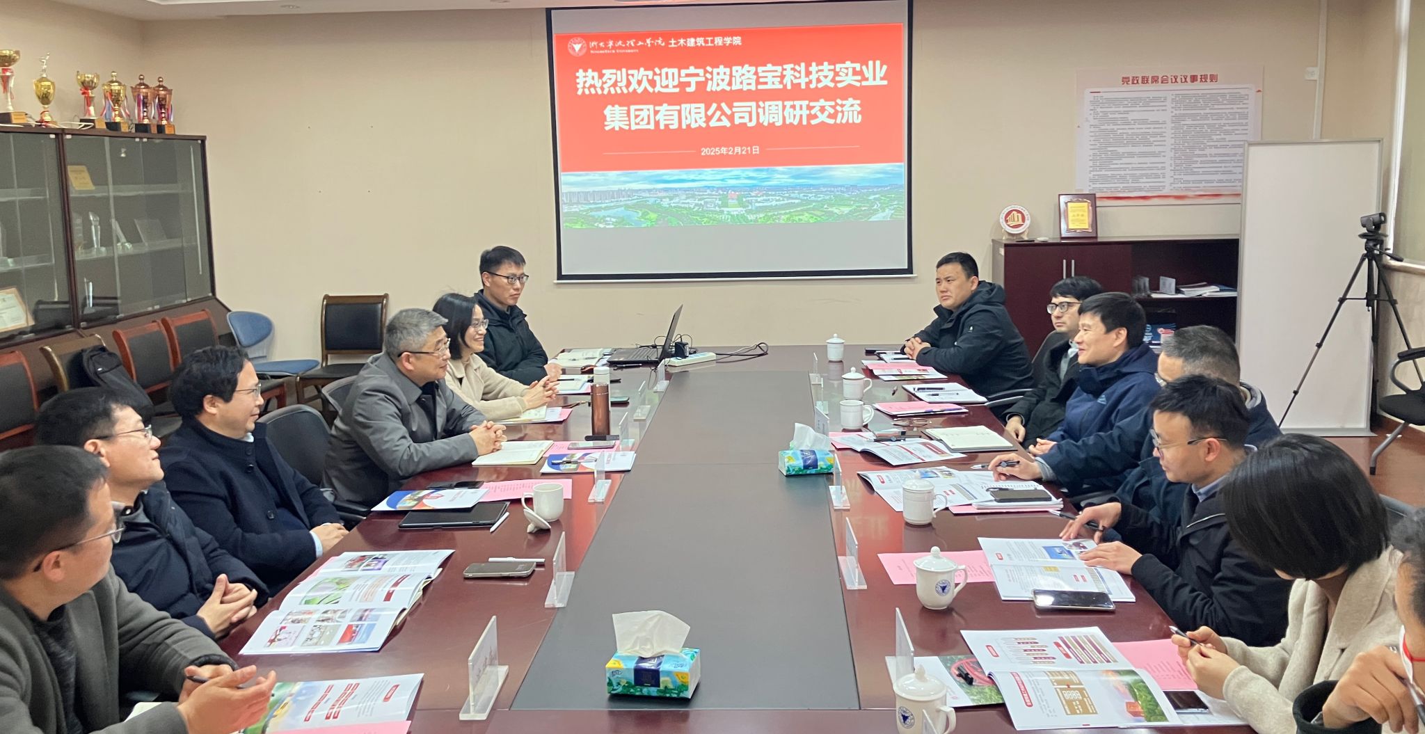 2025年2月21日,宁波路宝科技实业集团有限公司总经理王翼率队来访浙大宁波理工学院土建学院,就深化校企合作、推进博士后联合培养等事宜展开深入交流。学校人事处处长林承亮、科研处副处长张军,土建学院执行院长王银辉、党委书记王成等参加交流会。