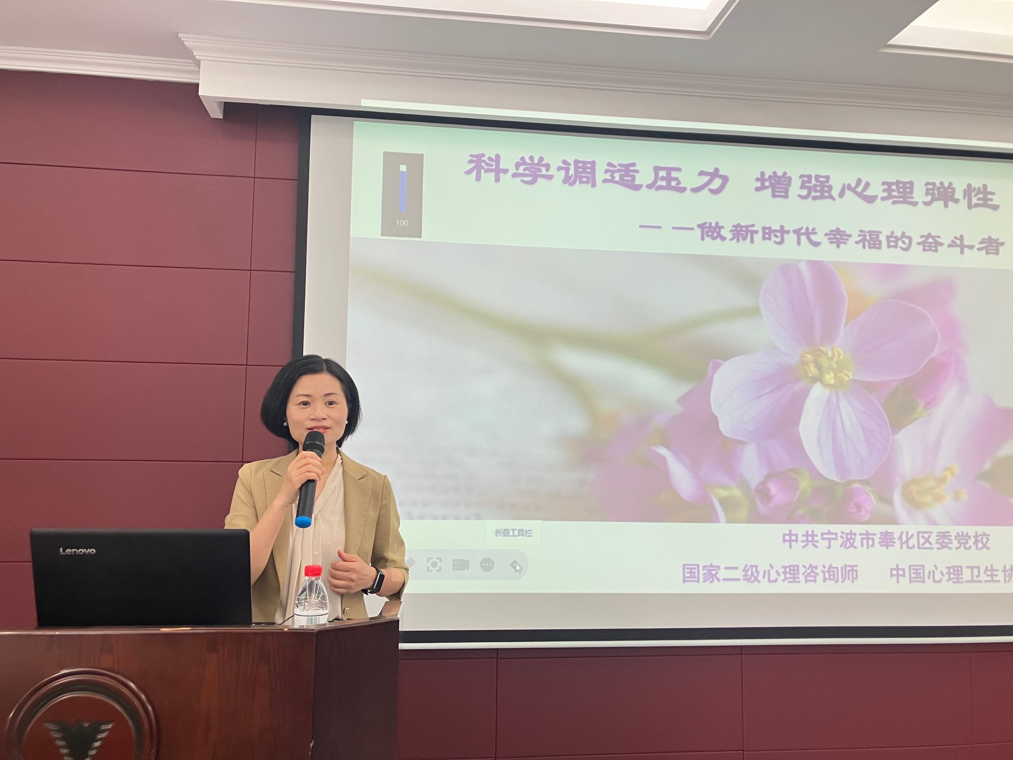 3月9日上午砼馨荟第一期在土建学院SA305报告厅如约举行,邀请到国家二级心理咨询师邬佩红高级政工师为教工们作《科学调适压力 增强心理弹性》的讲座。