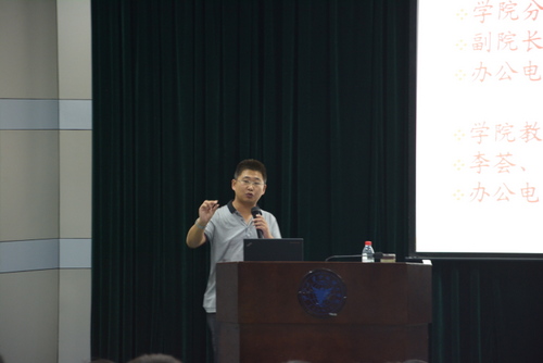 辅导员夏文来老师首先就始业教育开展和开学相关事宜做了通报,重点就考勤及请假制度做了说明,希望学生提升规则意识,明确发展目标,加强自我管理能力。副院长王银辉老师重点就学籍管理相关事宜向新生做了详细介绍,针对专业基本概况、专业培养方案、学分管理制度、考风考纪相关要求做了重点说明,此外,王银辉副院长向新生重点推介了土建学院与英国贝尔法斯特女王大学的合作办学项目,介绍了女王大学的专业优势和该项目短时间获得硕士学位的特点,并希望同学们明确发展目标,为自我发展赢得更多机会。
