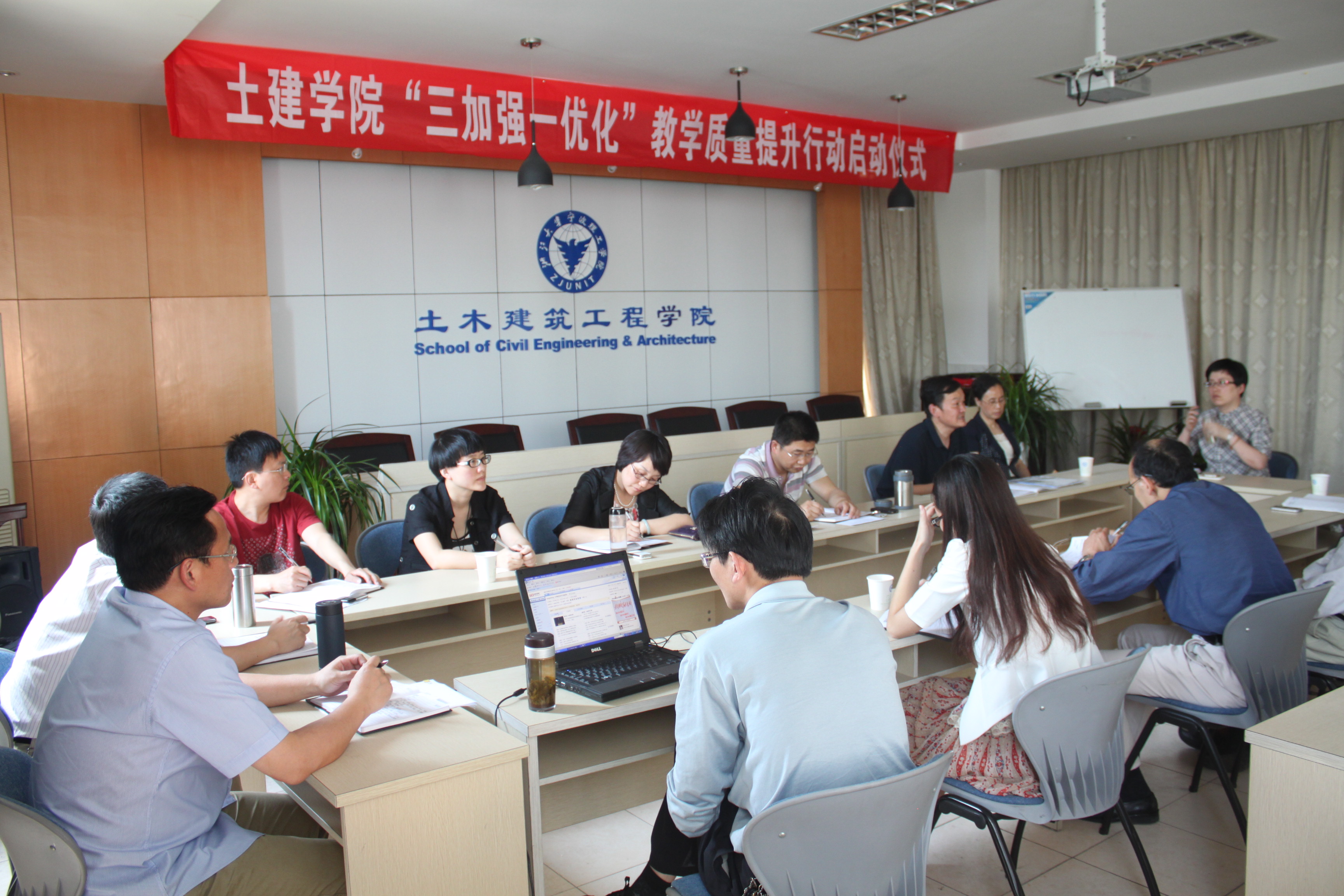会上,学校督导组成员吴大明老师首先就本学期在土建学院的听课情况进行了交流。他说一年来土建学院教师课堂教学工作成绩显著,老教师教学日臻成熟,形成了风格迥异、个性鲜明的教学风格;年轻教师成长迅速,通过老教师的传帮带以及课程观摩活动,教学技能不断提高,土建学院整体的课堂教学工作走上了良性发展的轨道。同时,吴老师也就教师中普遍存在的多媒体教学的泛化以及与学生互动、课程作业等问题与大家交流了一些想法。学院督导成员及其它老师也就课堂教学和听课情况进行了讨论和交流。