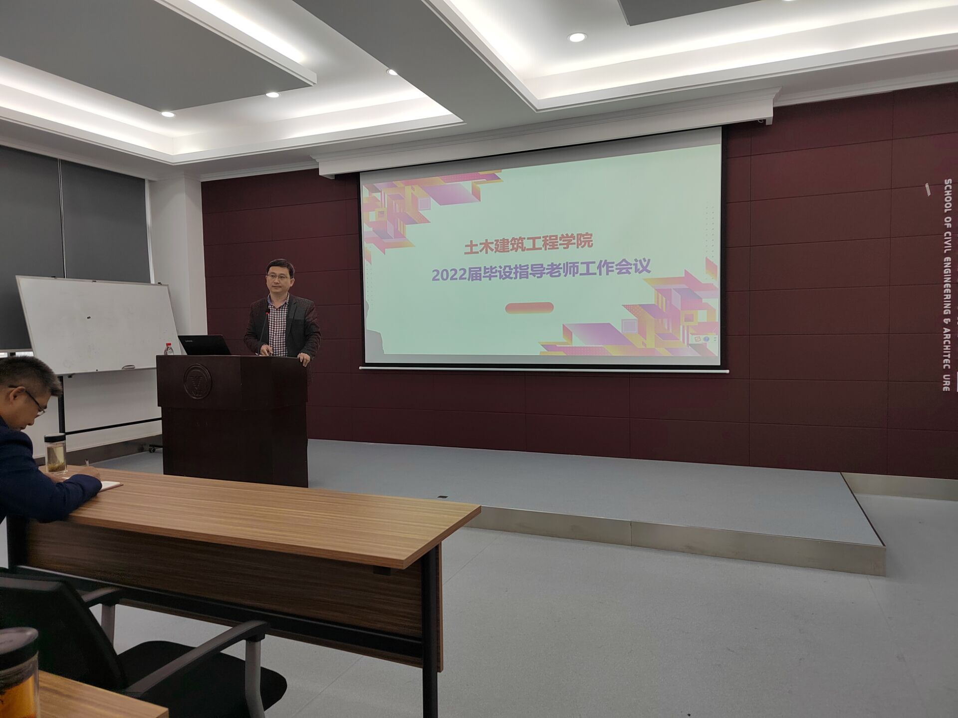 为进一步落实学校本科教学工作会议精神,切实提升本科教学质量,同时结合学校教务处关于开展2021年本科教学大讨论第二阶段工作的通知要求,11月5日,土建学院在SA305学术报告厅召开2022届毕业论文(设计)全体指导老师工作会议。土建学院领导班子成员、全体毕业论文(设计)指导老师、全体2021年新进老师共40余人参加了会议,会议由王文军副院长主持。