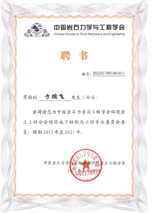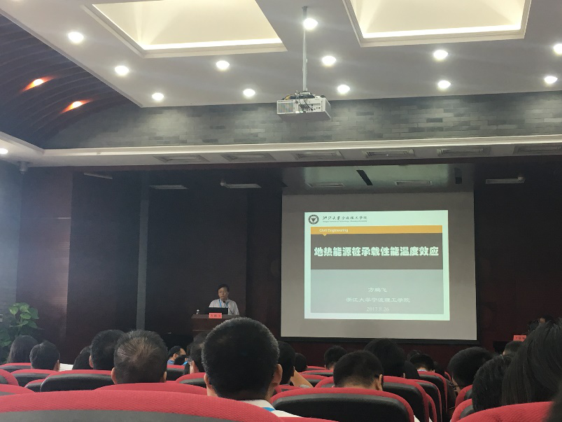 学术研讨会邀请了香港科技大学吴宏伟教授、清华大学宋二祥教授、中科院武汉岩土所李小春研究员、同济大学夏才初教授、清华大学程晓辉副教授等专家学者作了特邀报告。我校方鹏飞副教授作了题为“地热能源桩承载性能温度效应”的大会报告,并当选能源地下结构与工程专业委员会委员。