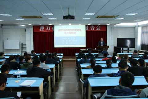 曹教授以第一完成人,在“钢筋混凝土多层及高层异形柱框架结构成套技术”和“新型组合剪力墙及筒体结构抗震理论与技术”等方面先后两次获得国家科技进步二等奖。会上,曹万林教授用生动幽默的语言,结合自身三十多年科研经历,为老师和同学们深入浅出地讲解了工程结构高效防灾体系、绿色建筑及建筑工业化、新型结构高效抗震体系研发及绿色农房建造技术等方面学术成果。曹教授报告内容丰富多彩,广大师生们纷纷感慨受益匪浅,他长期孜孜不倦科研探索的工作态度赢得全场热烈掌声。