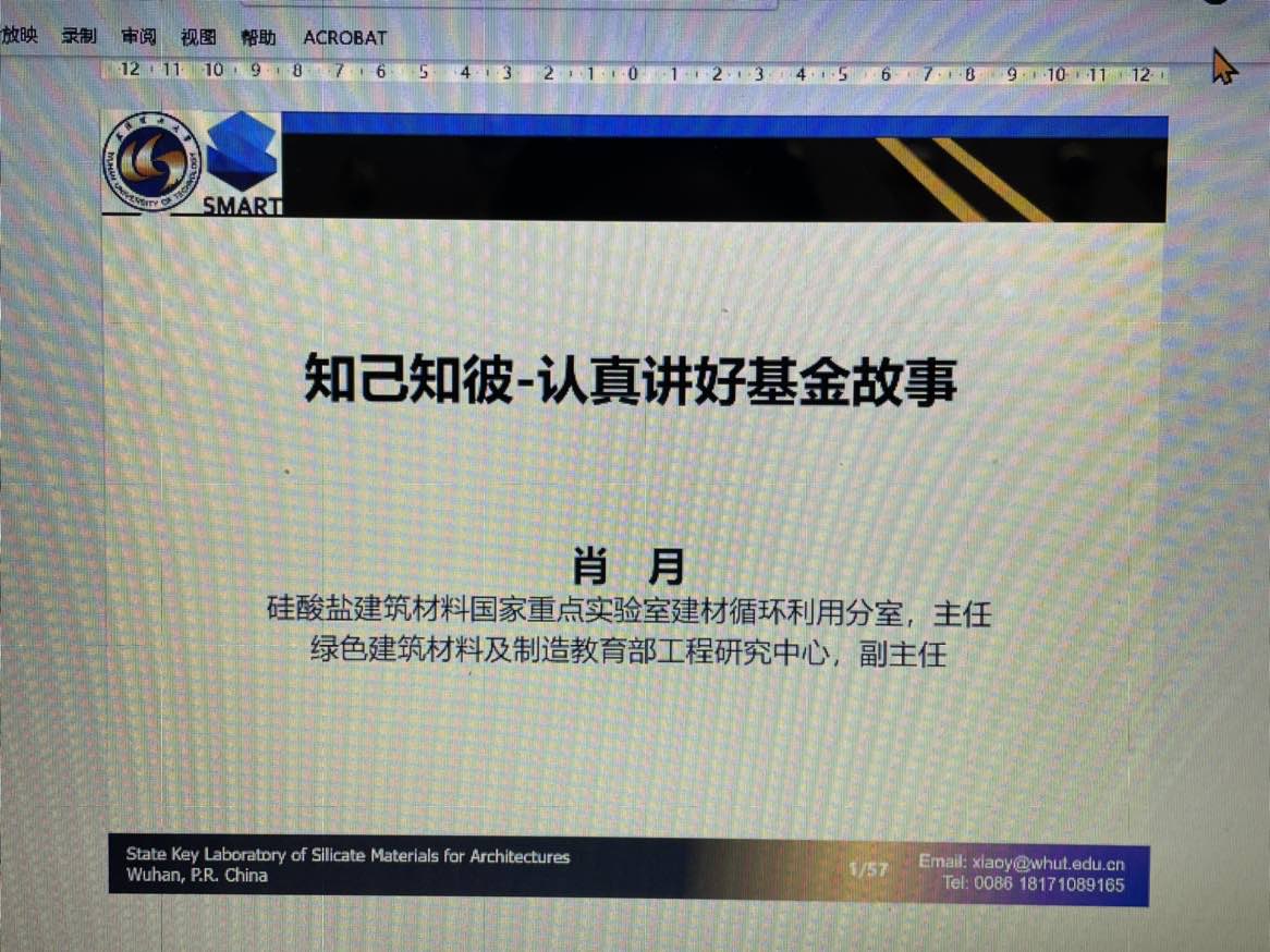 2022年10月28日下午,土建学院国家自然科学基金申报指导暨2023年国家自然科学基金申报动员会在SA306举行,本次讲座特邀武汉理工大学研究员、博士生导师、绿色建筑材料及制造教育部工程研究中心副主任肖月作线上专题报告。学院副院长耿健、全体青年教师及部分非青年教师参加了会议。