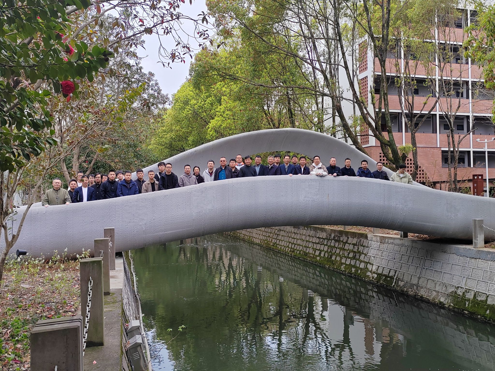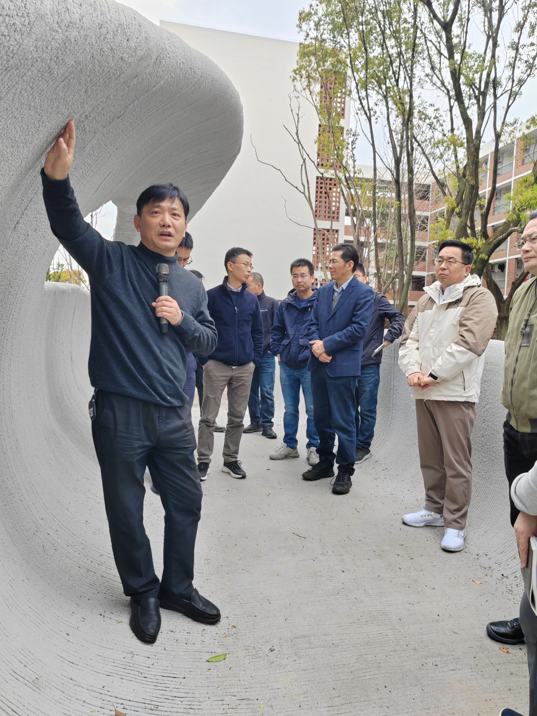 2025年3月28日上午,宁波市土木建筑学会道路桥隧学术委员会来校举行“3D打印桥梁考察及学术交流”活动,本次活动包括混凝土3D打印桥梁现场考察和“砼行论坛”学术报告两部分。参加活动的包括宁波市土木建筑学会道路桥隧学委会委员、宁波市土木、交通、市政领域企业代表以及土建学院师生,共计60多人。