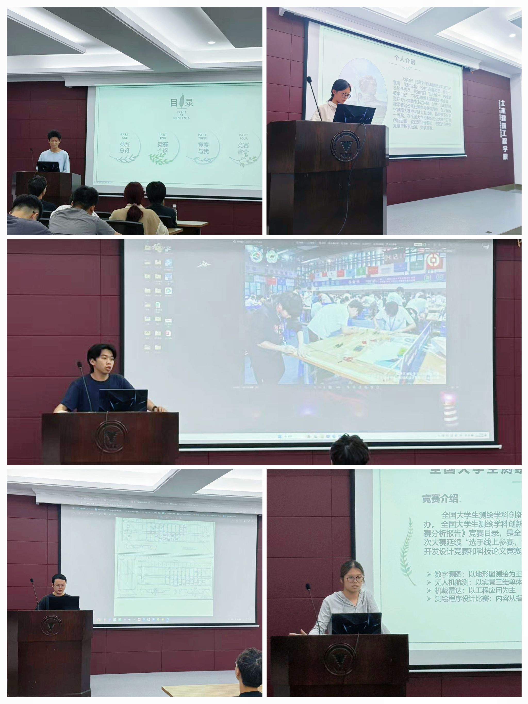 随后,周俊浩同学聚焦结构设计竞赛,以自身参赛历程为线索,从赛事难度梯度、备赛核心要点,到竞赛成绩对学业发展、考研升学的赋能作用,层层拆解高含金量赛事的“进阶逻辑”,为有志冲击赛事的同学提供清晰参照;黄弼清同学结合专业优势,围绕数字建筑、先进成图赛事,从规则要点到作品打磨技巧,将专业能力与竞赛需求深度衔接,打开实践思路;汪嘉雨同学则以“课内实习→学科竞赛”为脉络,聚焦测绘赛事实操特性,从基础技能积累到赛事能力拓展,勾勒“以学促赛、以赛践学”的成长路径,让专业学习与竞赛参与的关联更具象。王慧清同学以“竞赛成长叙事”为线,讲述了自己从大一“跟学跟赛”、跟随师长积累经验,到大二大三“自主牵头、创新破题”的蜕变历程,以鲜活的成长故事,传递出“坚持与沉淀”在竞赛之路上的重量。