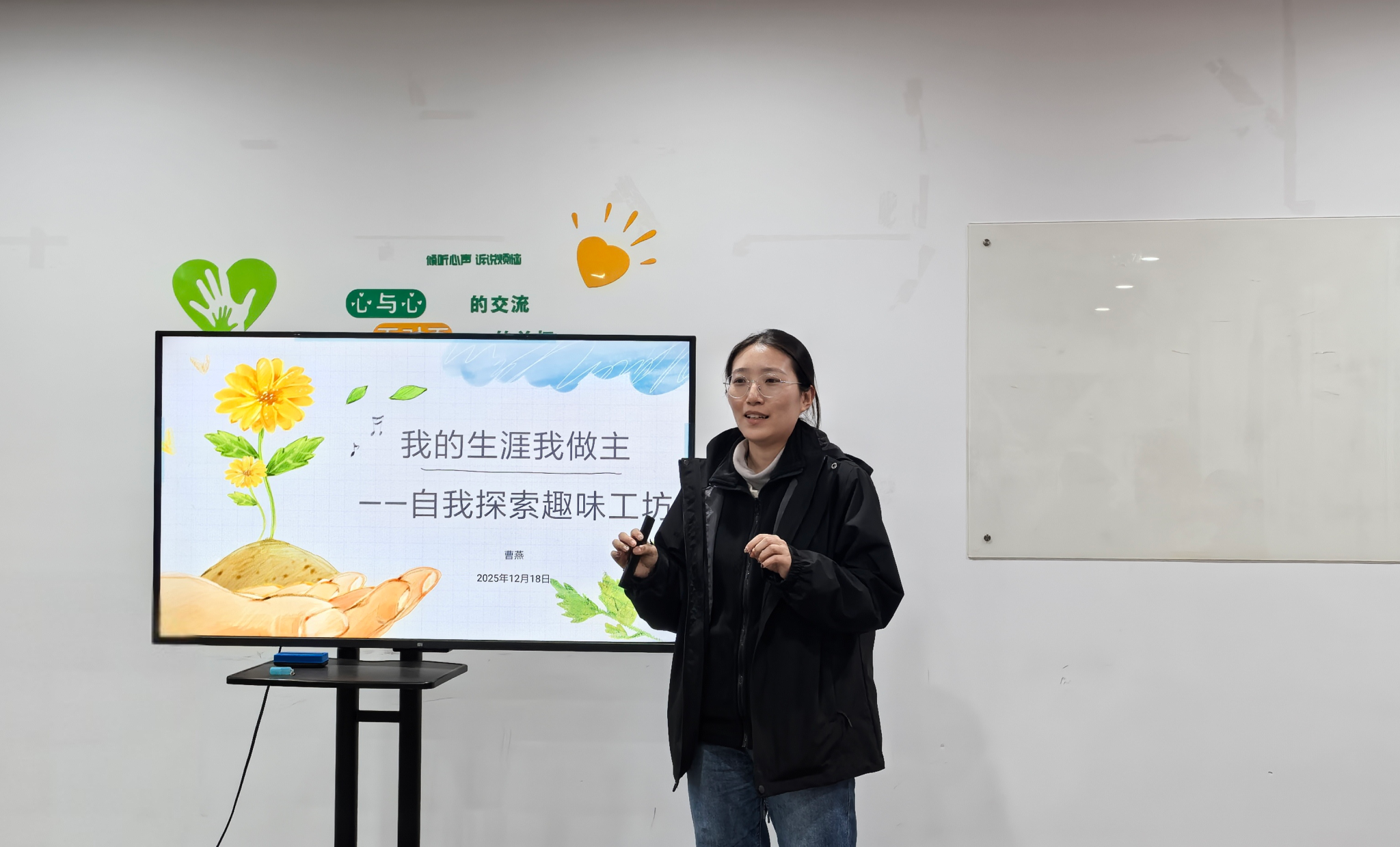 为帮助学生明确职业发展方向,探索自我潜能,12月18日,土建学院于甬尚雷锋工作室开展“我的生涯我做主——自我探索趣味工坊”活动,活动特邀教务处曹燕老师担任主讲嘉宾,20名来自不同专业的同学参与了活动。