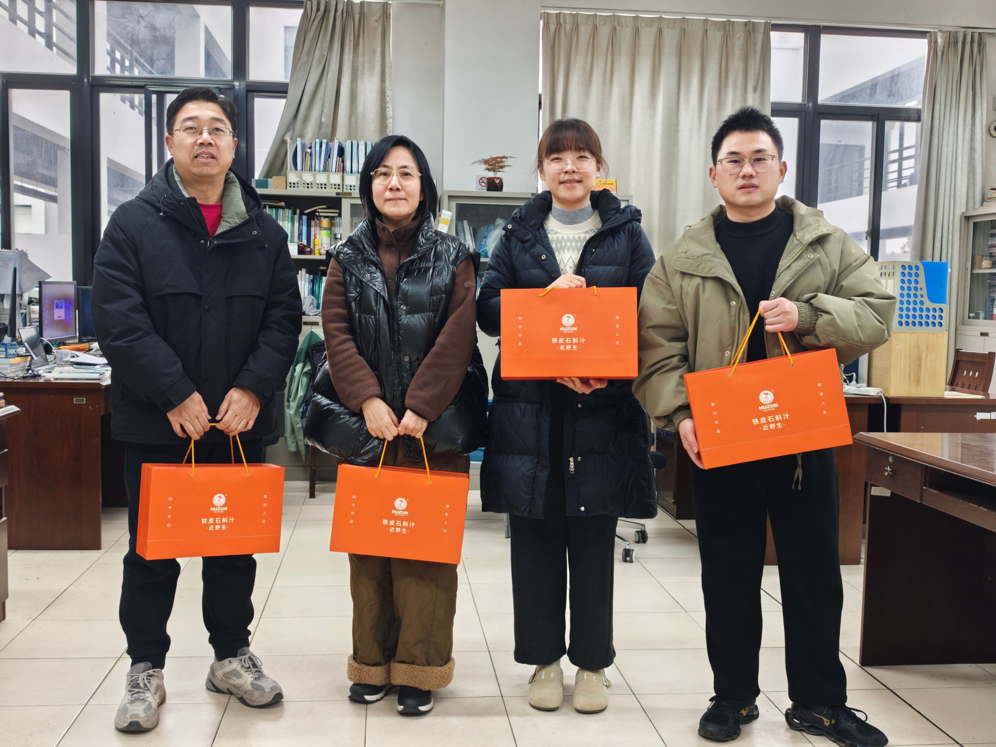 1月26日,土建学院土木工程2004级校友谢翔哲向学院赠送由其企业生产的铁皮石斛汁,以此表达对学院和老师的感恩之情,在严寒冬日为教师们送上健康与温暖。