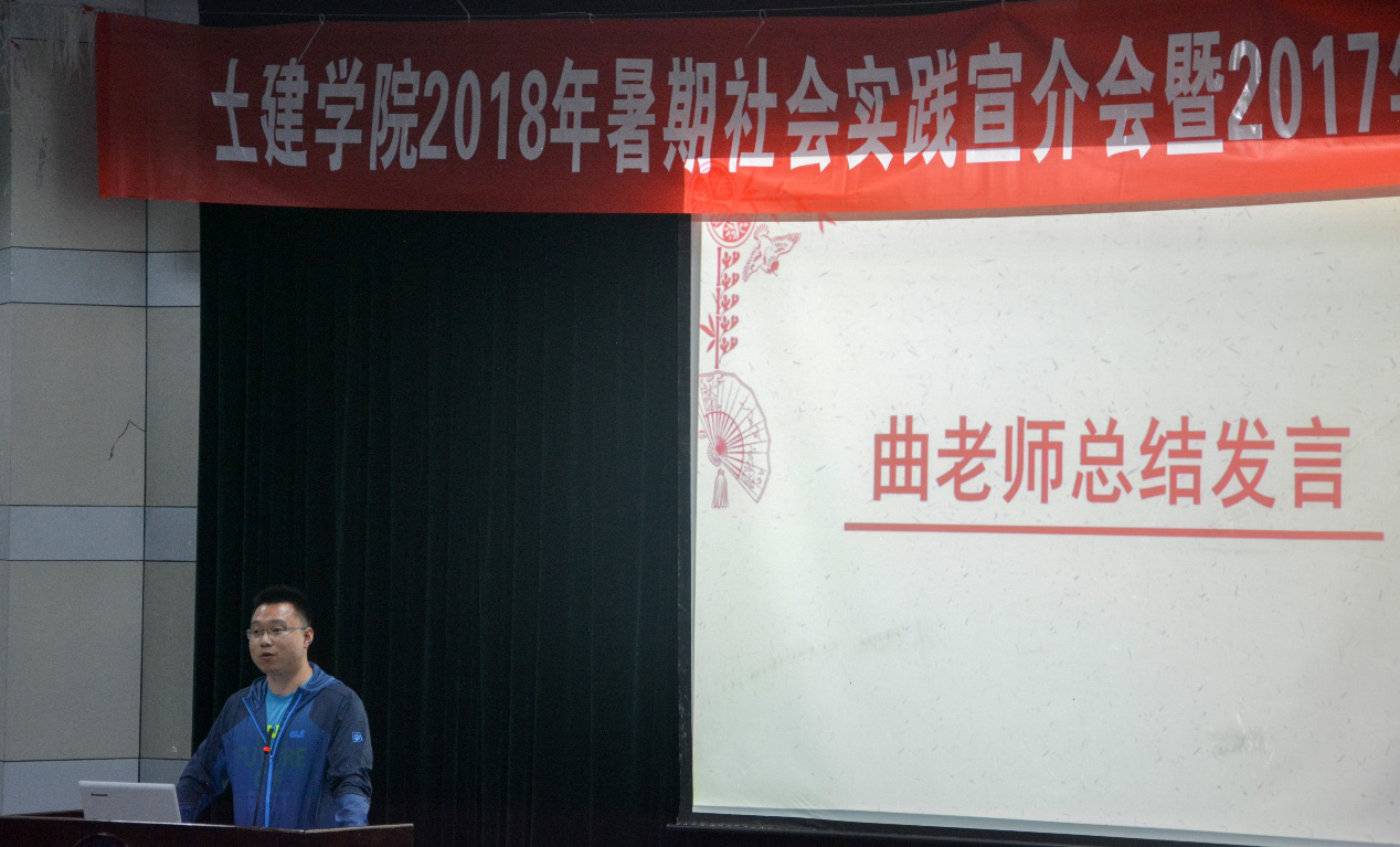 2018年4月22日6时30分,土建学院2018年暑期社会实践宣介会暨2017年暑期社会实践表彰大会于SF103准时召开,出席本次活动的有学院团委书记张腾老师和学院团委副书记曲昊杨老师、团委副书记助理郭易盟、2017级优秀团队代表以及土建学院全体大一新生。