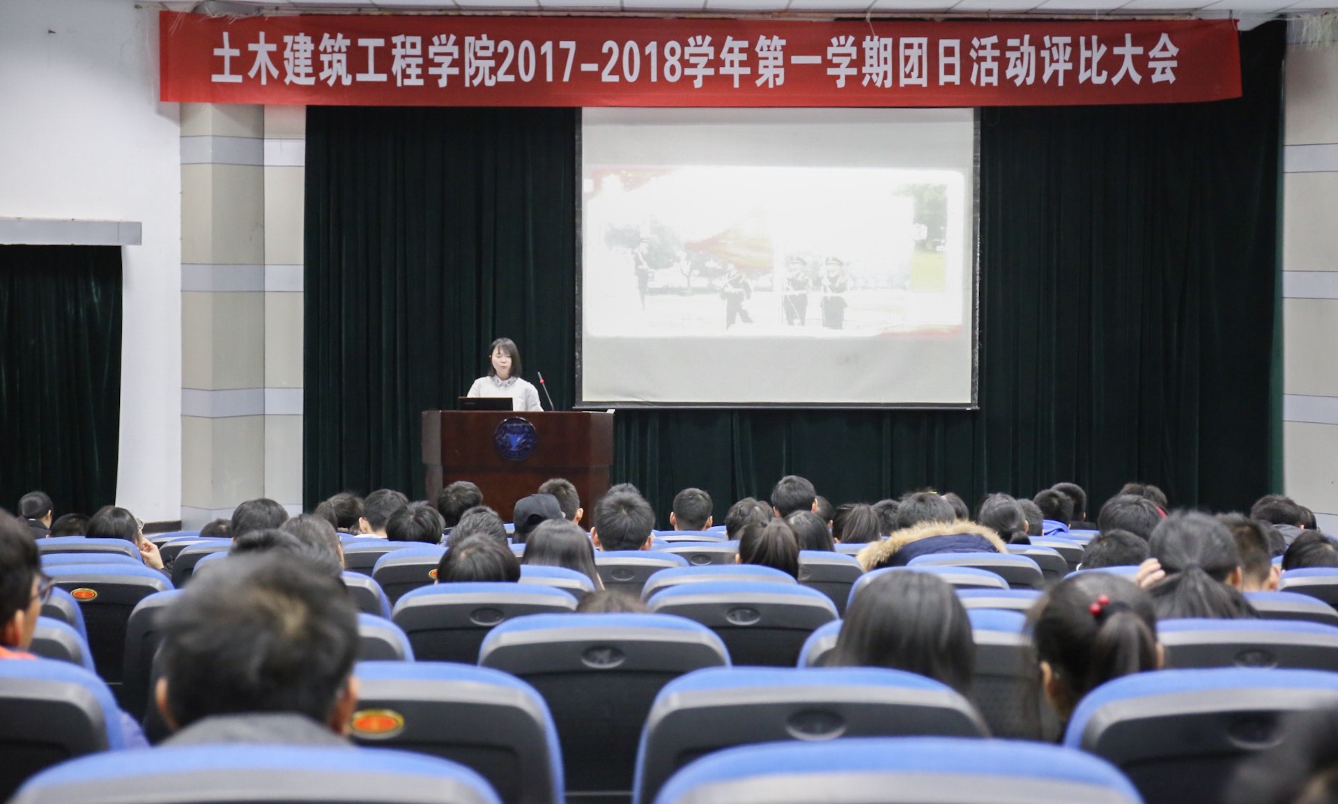 2017年12月10日晚6时30分,土建学院团日活动评比大会在NF103举行。出席本次活动的有学院党总支书记童微星老师、团委副书记曲昊杨老师、思政辅导员许琼波老师以及全体17级新生。