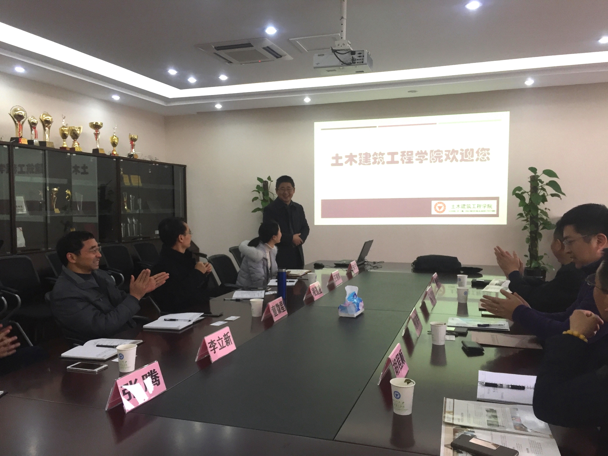 2016年12月27日上午,浙江省建设投资集团股份有限公司海外部党委书记张明智和中国浙江建设集团(香港)有限公司董事长管满宇等一行来土建学院参观访问,洽谈校企合作事宜。学院院长凌道盛、总支书记童微星、副院长王银辉、工管所副所长李立新、辅导员张腾、朱宁出席了会议。会议由童微星书记主持。