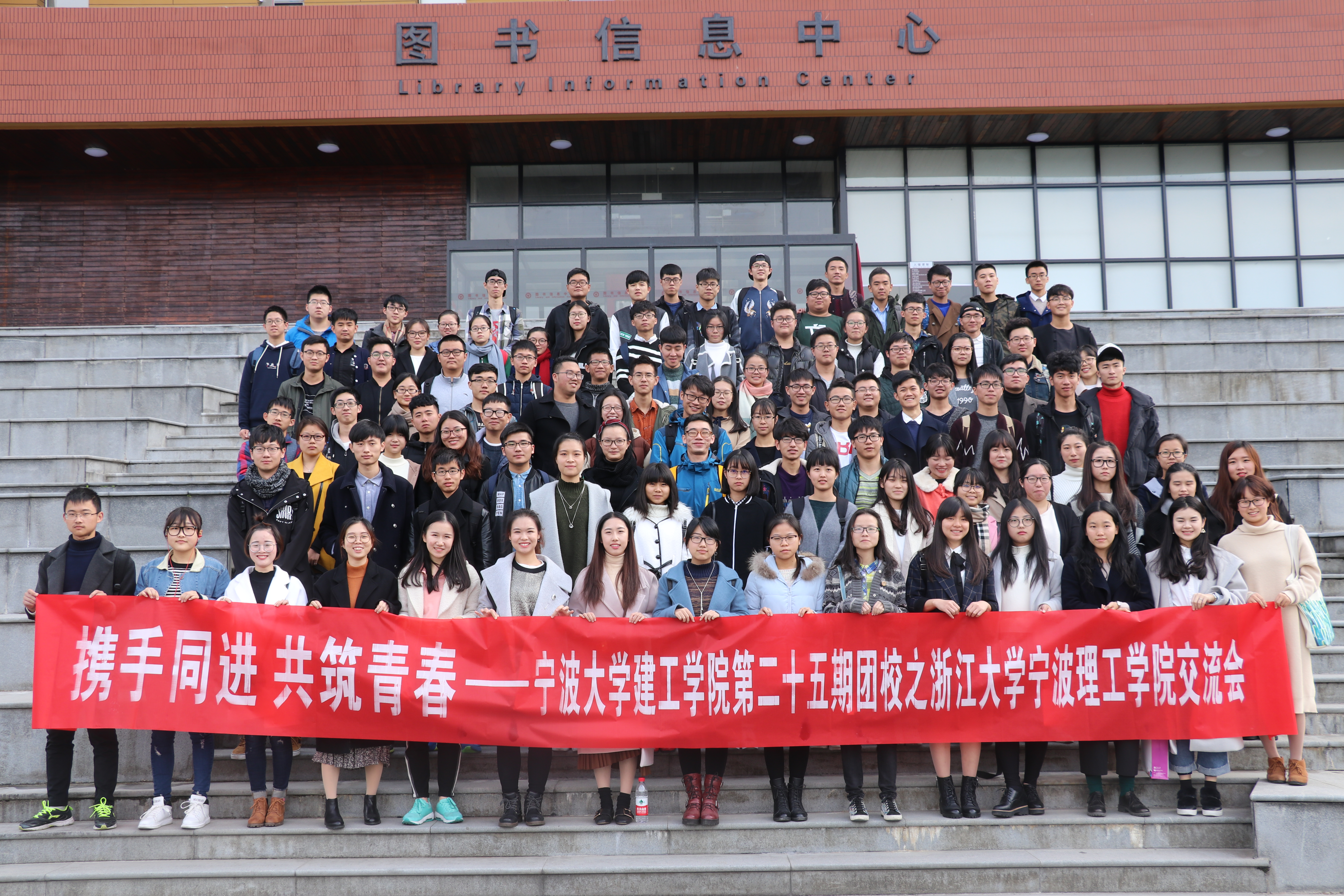 本次交流会第一项议程,由两学院的主席团对本组织的职能定位及各部门工作做简要的介绍。交流会第二项议程,各部门进行交流提问与解答。宁波大学团学组织 “引进来,走出去”的理念,让同学们眼前一亮;在宣传工作方面,建工学院善于借助外界媒体的力量将自己学院的风采更好的展示给外界,让外界更好的了解宁大建工学院,让家长等群体对孩子所在学院全面了解,也对日后招生工作起到宣传作用。土建学院的志愿者公益活动,如“甬尚雷锋”工作室、青益工程、素拓园等活动也得到了宁大同学的极大肯定。最后土建学院团学干部带领宁大同学参观了校园,并于图书馆前合影留念。