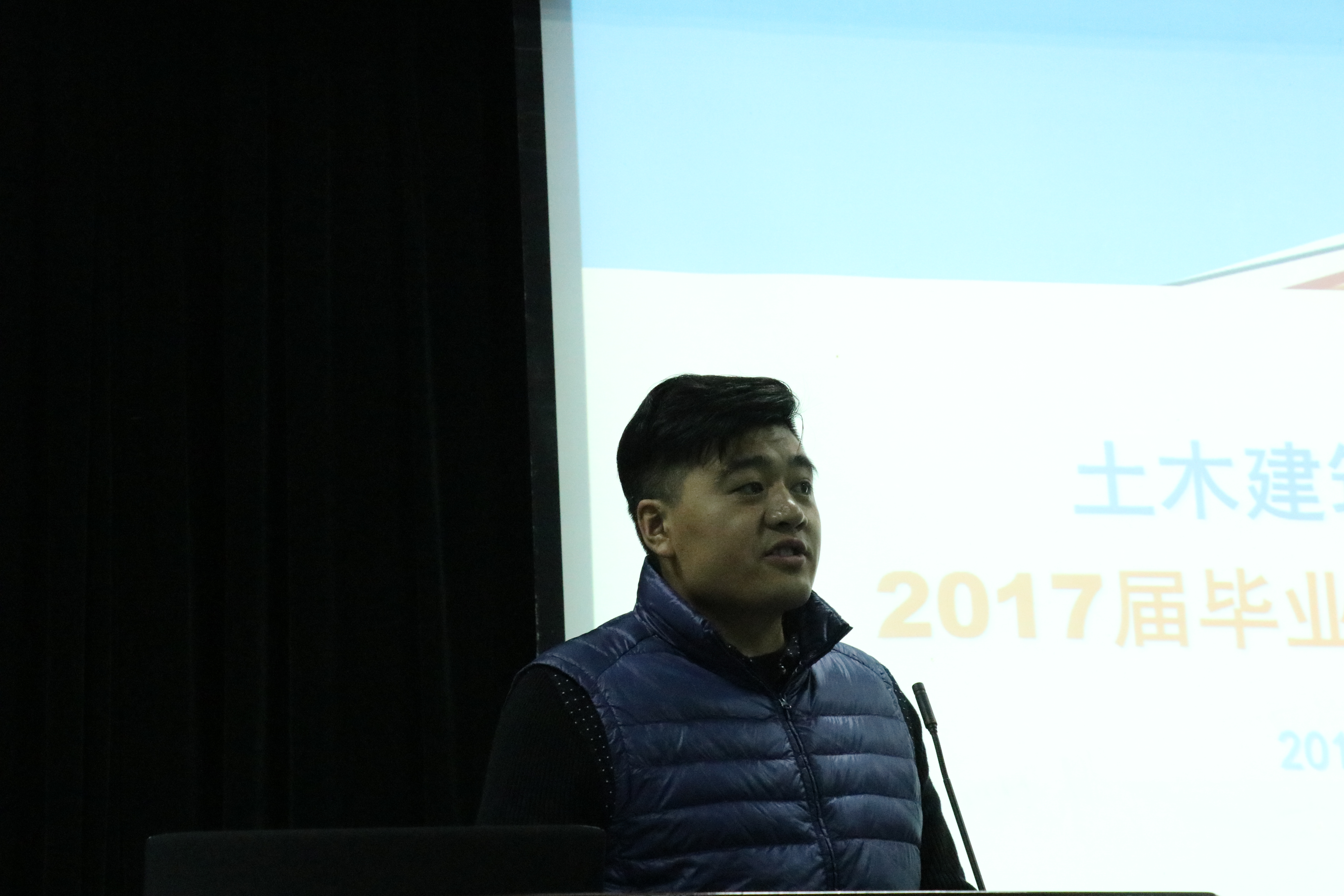 11月23日晚18:30,土木建筑工程学院于NF103召开了2017届毕业生大会,学院党总支书记童微星老师、辅导员张腾老师和全体毕业生参加了本次大会,会议由张腾老师主持。