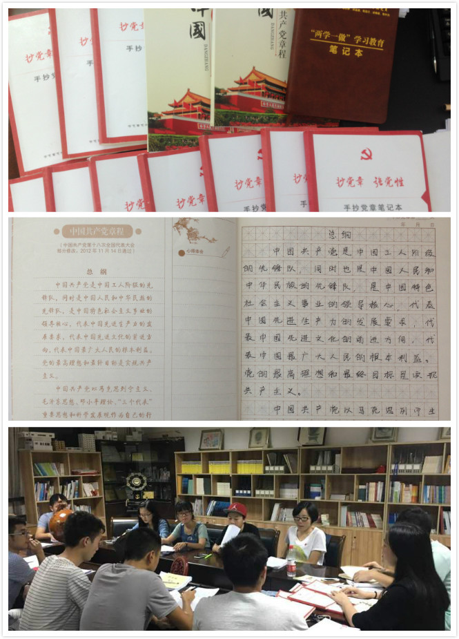 根据学校党委在全校开展“两学一做”学习教育的要求,营造学院“学党章党规、学系列讲话,做合格党员”的浓厚教育氛围,土建学院土木工程学生党支部全体党员开展“抄党章 强党性”活动。