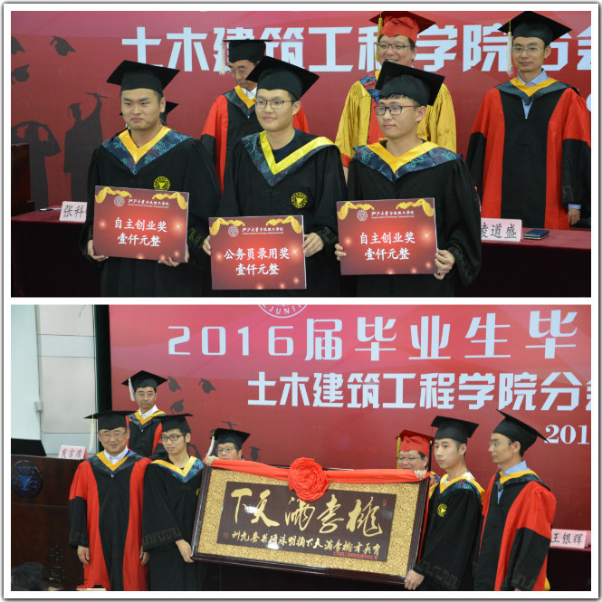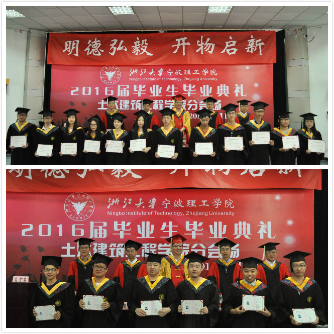 2016届毕业生即将离开母校,扬帆起航,毕业典礼既是对过去四(五)年的总结,更是对未来人生的期盼。乘风破浪会有时,直挂云帆济沧海,衷心祝愿土建学院2016届全体毕业生前程似锦,鹏程万里!