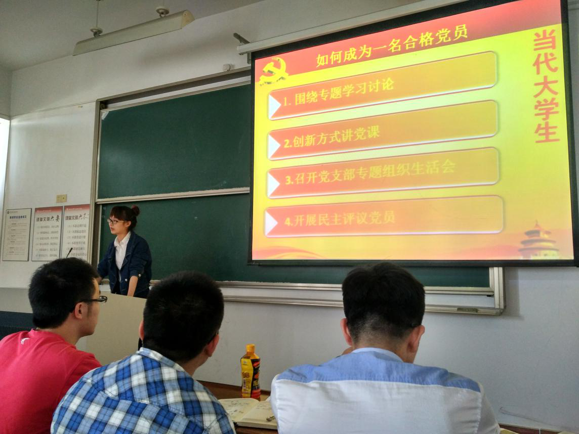 为响应中共中央关于“两学一做”的精神要求,5月13日下午,土建学院道桥学生党支部组织非毕业班全体党员和全体积极分子在SB302参加微型党课活动,深入学习习总书记系列讲话。