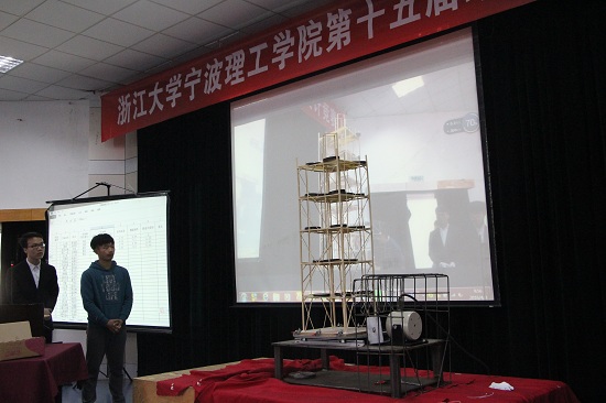 本次本届结构设计大赛共有60组近180人参加。大赛主题为“塔式停车楼结构设计与模型制作”,以竹条为材料,制作六层的停车楼。评分构成为模型制作与加载试验两方面内容,其中加载试验分三级,以检测模型体系的抗震性能。最终大赛评选出了一等奖作品3个,二等奖作品5个,三等奖作品7个。