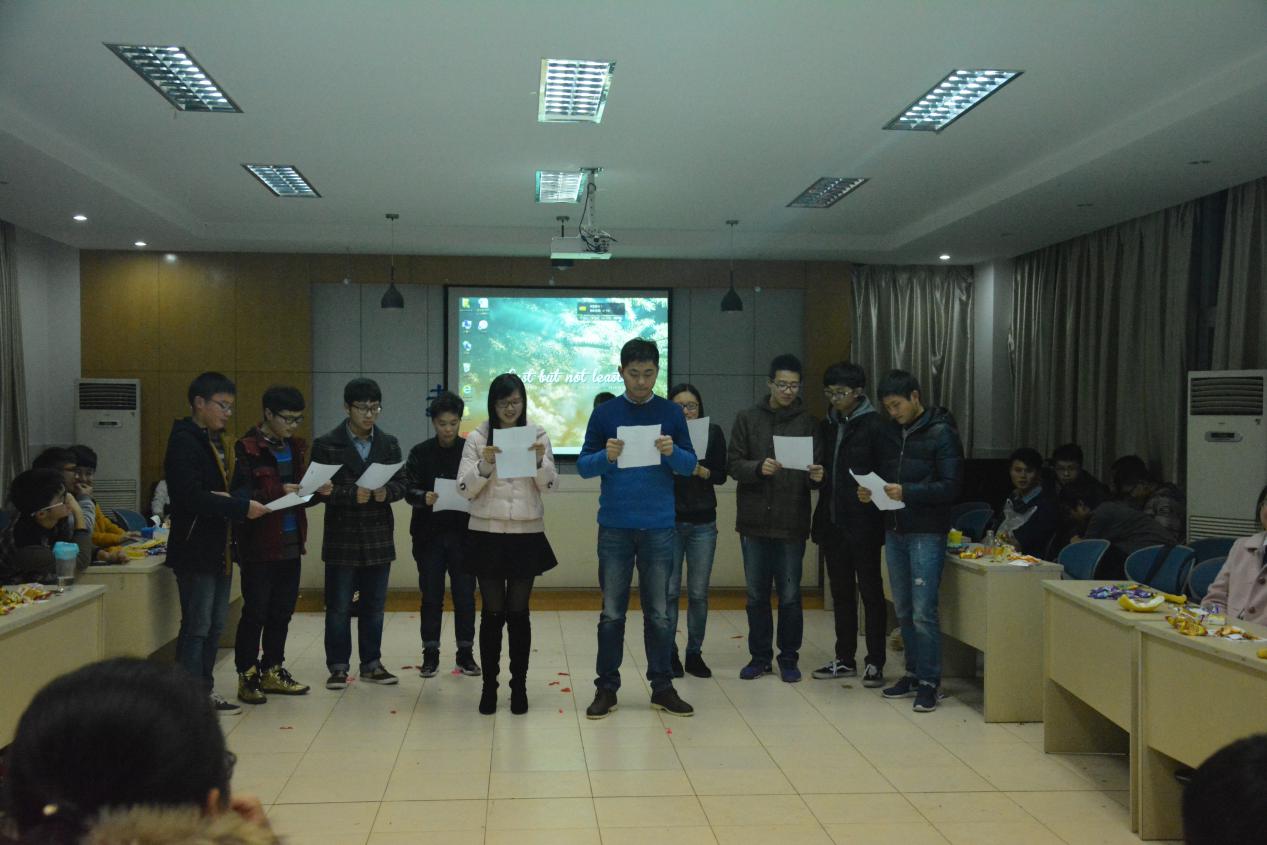 最后,由学生党员代表对大家说了新年的寄语与祝福。联欢会在欢笑声中落幕了,学生党员们根据游戏中所获的分数得到了奖品。此次活动为党员们展示才艺、同娱互乐提供了平台,通过表演、互动游戏等环节,党员之间增进了了解、培养了默契,使党员们对学生支部这个大家庭充满了认同。2016年,党员们将会继续努力工作、勤奋学习、踏实做人,以更加饱满的斗志和更加热情的服务投入到工作、学习和生活当中,用自己的刻苦努力和辛勤汗水为学院的建设和发展添砖加瓦。