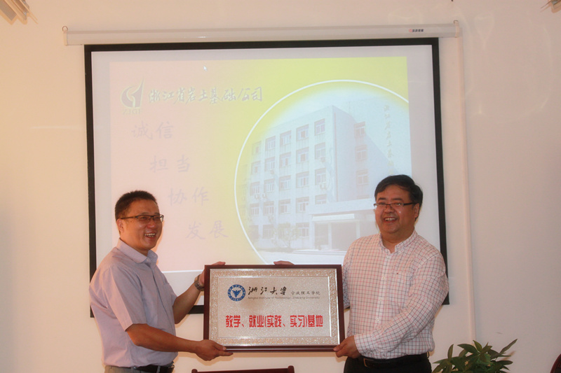 授牌仪式中,土建学院谢新宇院长向浙江省岩土基础公司总经理汪拾金颁发了“浙江大学宁波理工学院教学、就业(实践、实习)基地”牌匾,全体与会人员在会后进行了合影。
