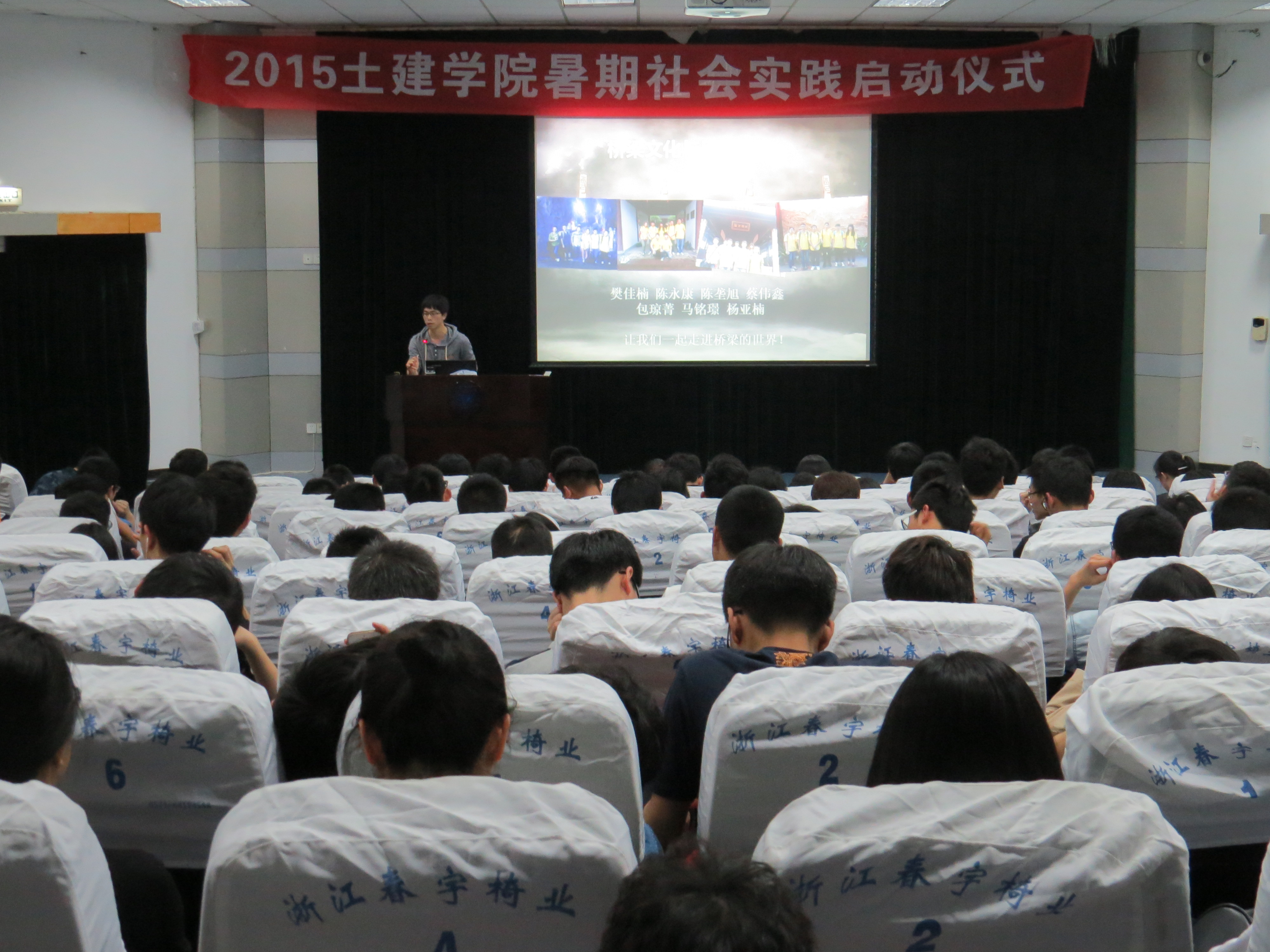 2015年4月26日晚18点30分,土木建筑工程学院暑期社会实践宣讲会在NF103举行。团委副书记夏文来老师、辅导员朱宁老师、优秀团队代表,团学主席团成员和14级全体学生参加了本次活动。