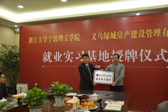 13时30分,“就业实习基地”授牌仪式在义乌绿城公司会议室举行。义乌绿城公司方面,常务副总经理孙智、副总经理马月辉、总工程师彭伟贤及各部门经理和项目经理出席了仪式;土建学院方面,学院院长谢新宇、总支书记童微星、工管所负责人李立新、土木所教师代表李围、就业辅导员夏文来出席了仪式。仪式由义乌绿城综合管理部经理楼巧园主持。