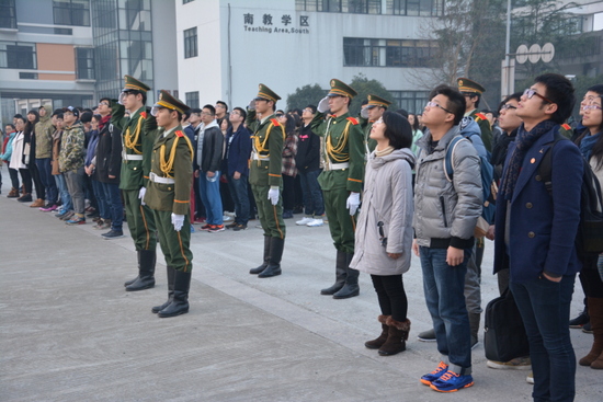 12月29日早上6点50分,土木建筑工程学院举行升国旗仪式,学院思政辅导员、团学组织成员、14级班委参加本次活动。在国旗队整齐划一的步伐声中,升国旗,奏响国歌,在场所有老师以及同学行注目礼,气氛安静,场面庄重。