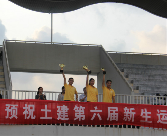 10月11日上午8:30土木建筑工程学院第六届新生运动会于北田径场隆重举行。土建学院党总支书记童微星老师、思政副主管周丽娟老师、团委副书记夏文来老师、辅导员朱宁老师及2014级新生班导师出席开幕式。首先由童微星老师致开幕词,他对学院举行第六届新生运动会表示祝贺,14届的新生们踊跃的参与了运动会,展现了土建人的精神,有强烈的团队意识和班级荣誉感。童老师对运动员们寄予了深切的期望并预祝此次运动会圆满成功。随后夏文来老师讲解了运动会相关安全注意事项,坚持“友谊第一,比赛第二”,在比赛中发挥最高水平。本次运动会设置了径赛、田赛等比赛项目。赛场上,运动员们挥汗如雨、顽强拼搏;赛场外,同学们呐喊助威,激动无比。