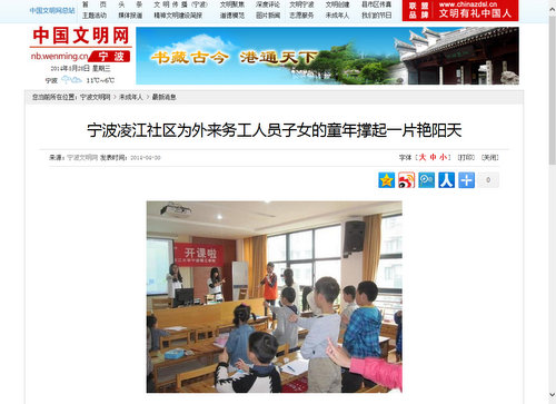 今年4月开始,土建学院青年公益志愿者同鄞州区文明办合作于凌江社区试点开展社区“素拓园”项目,旨在构建学校、家庭、社会“三位一体”的未成年人思想道德建设工作网络。