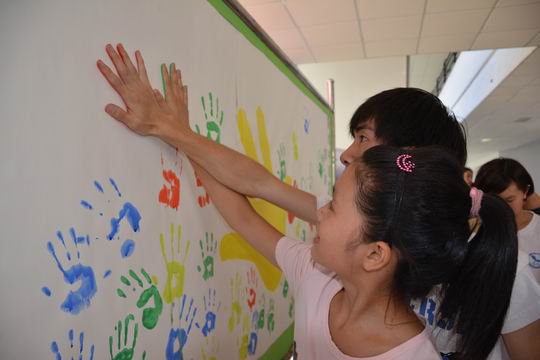 开营典礼上,来自鄞州流动人口小学的范超英小朋友在发言中说道,自己随父母来宁波已经四年,由于父母要上班,暑期根本没有时间照顾自己,夏令营的开办为父母解决了后顾之忧,也为自己提供了更好的学习平台。国家开发银行企业代表为夏令营“梦想书库”剪彩,并为“我的中国梦”夏令营logo揭幕。来自理工学院的大学生志愿者同外来孩子们“一对一”长期结对,在夏令营“结对榜”上共同印下缤纷绚丽的手印,结对志愿者将作为孩子们未来的成长伙伴,引导他们“树立梦想、坚守梦想、实践梦想”。